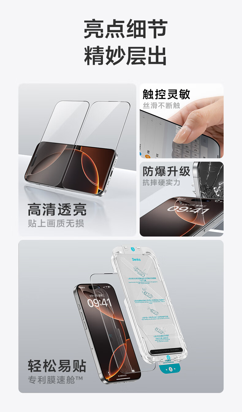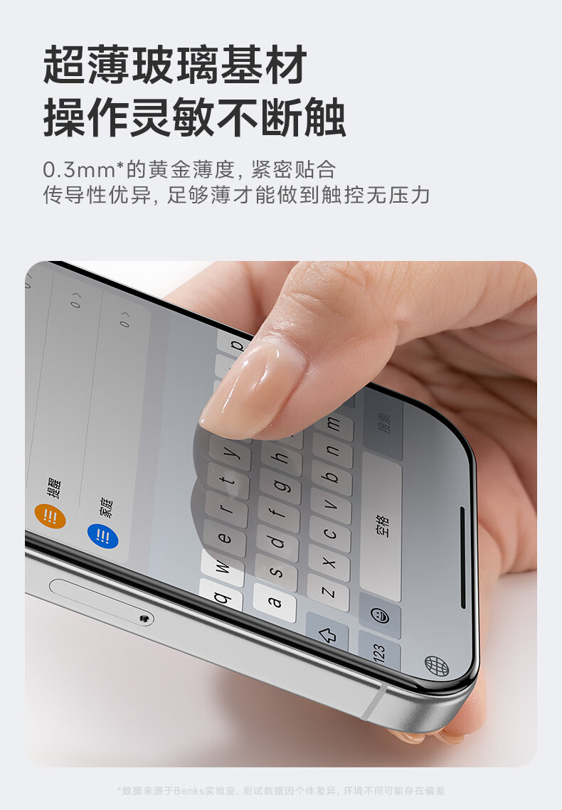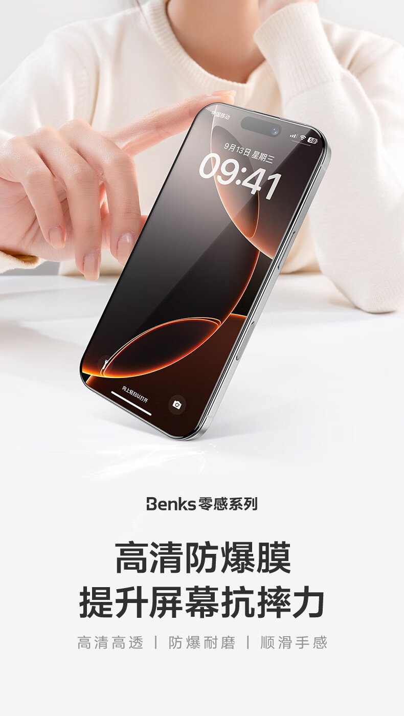 Benks is suitable for Apple 16Pro tempered film iPhone 16Pro zero-sensitive dustproof, anti-fall, anti-fingerprint ultra-thin mobile phone film, high-definition 2 pieces