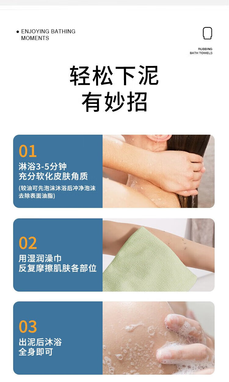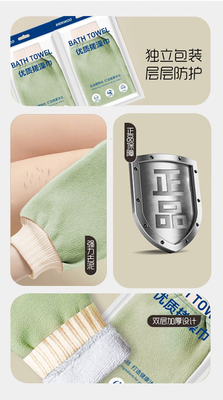 MEN WOO German bath towel for men and women, powerful massage mud back exfoliating coarse and fine sand enlarged bath towel