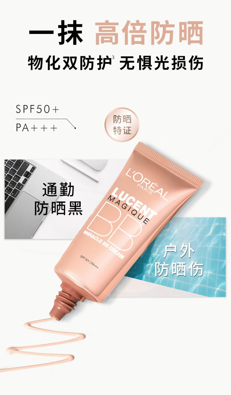 L'Oreal New Powder BB#10 Repair Cream 30ml Pre-Makeup Concealer Sunscreen Isolation BB Cream Liquid Foundation New Year's Gift for Girlfriend