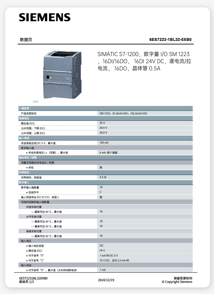 Siemens 6ES7223-1BL32-0XB0 PLC module controller SIMATIC S7-1200, digital I/O SM 1223