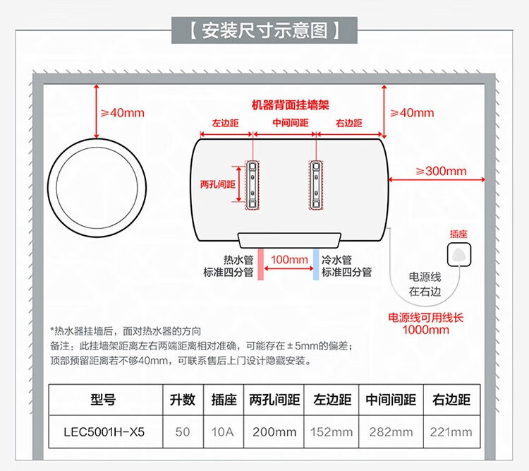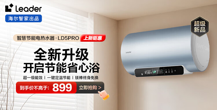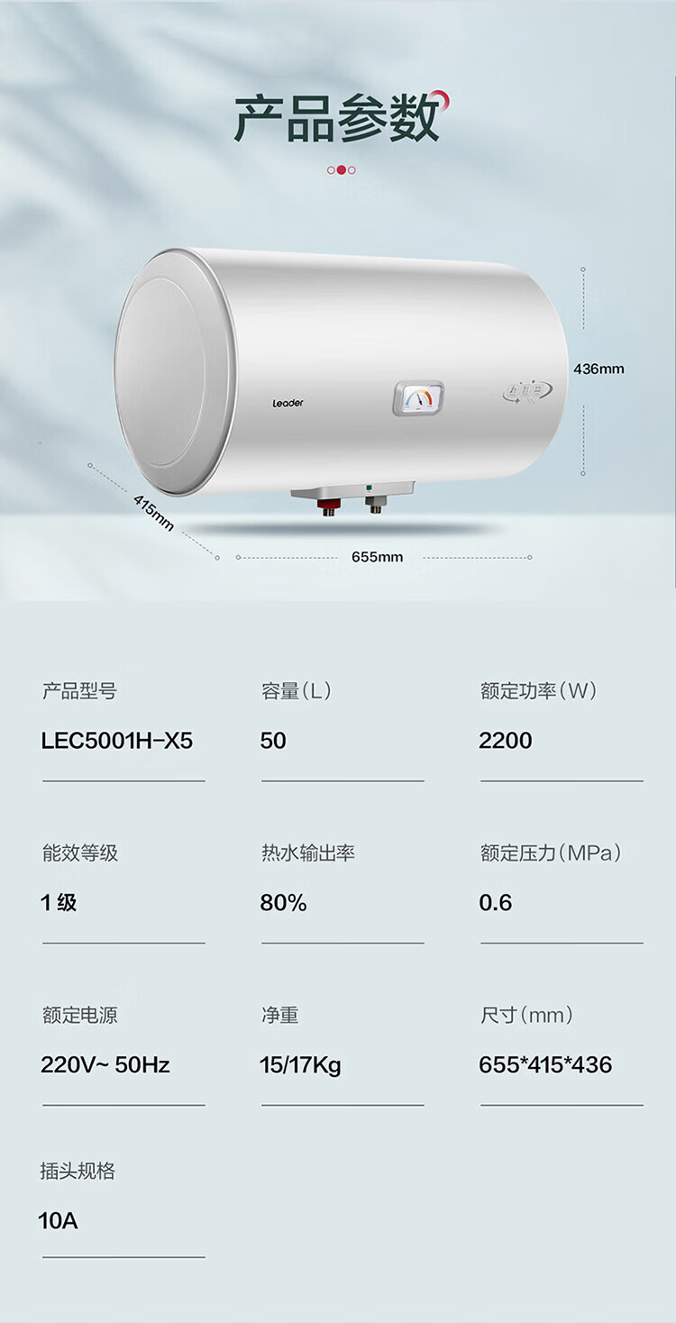 Haier produces Tongshuai 50-liter electric water heater JD.com self-operated door-to-door installation household water storage type 2200W energy-saving fast heating state subsidy 20% first-class energy efficiency LEC5001H-X5