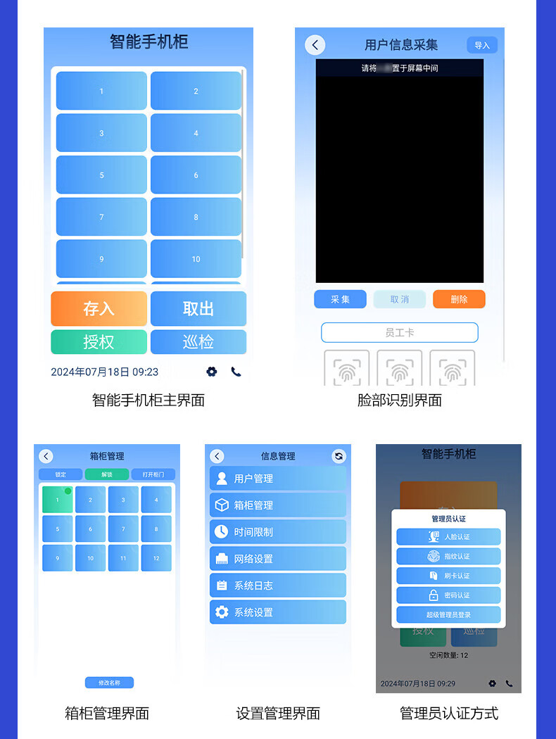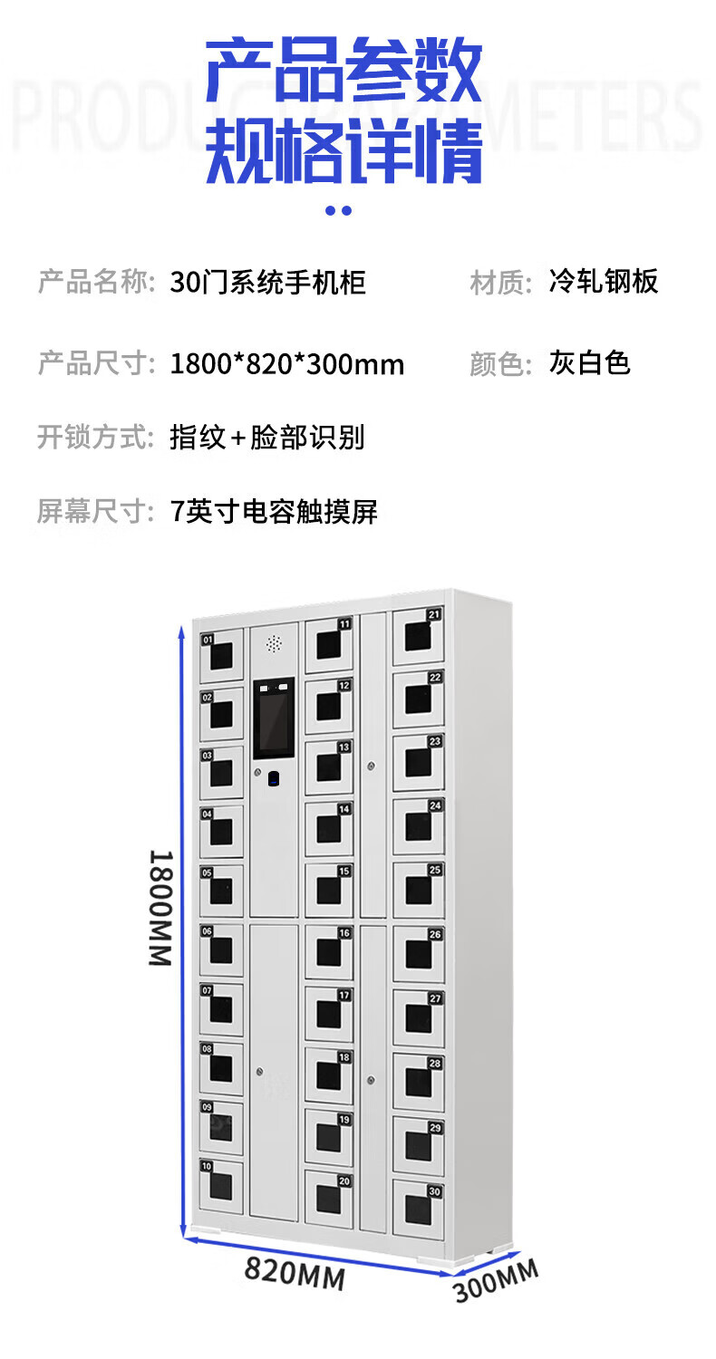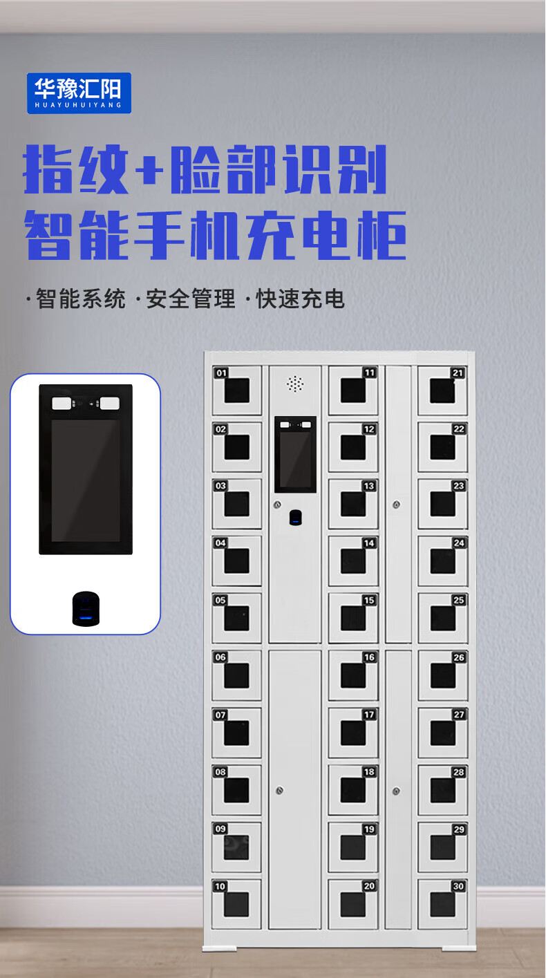 Huayu Huiyang 30-door system mobile phone cabinet shift cabinet intelligent dual authentication time management charging cabinet face recognition + fingerprint infrared presence detection model HY-HSJG15