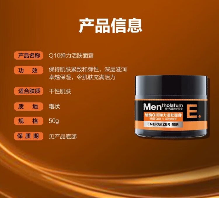 Mentholatum Men's Coenzyme Q10 Elastic Revitalizing Cream 50g Moisturizing Lotion Hydrating Skin Care Products for Men