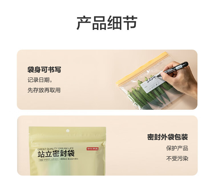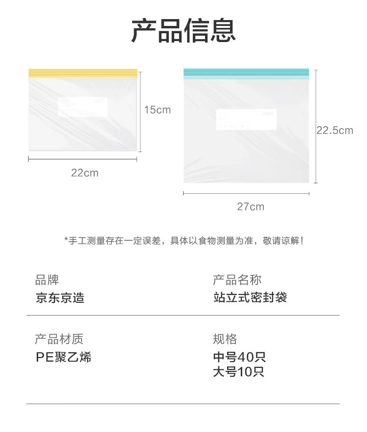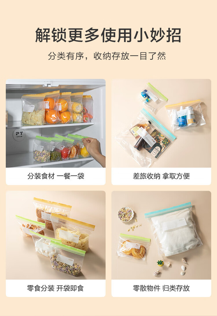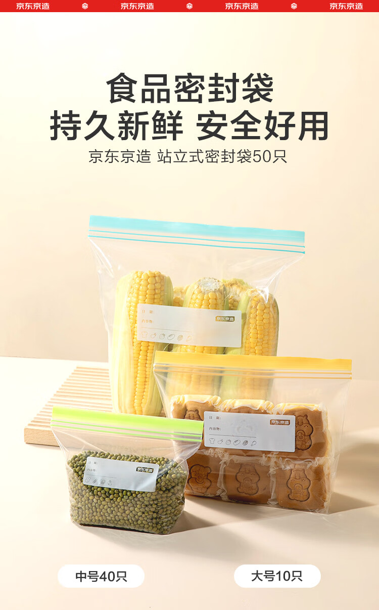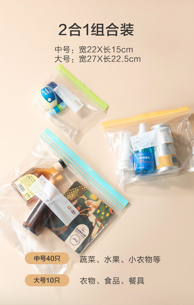 Made in Tokyo, sealed bags, standing food-grade fresh-keeping bags, barbecue and camping combination pack, medium + large size, 50 pieces