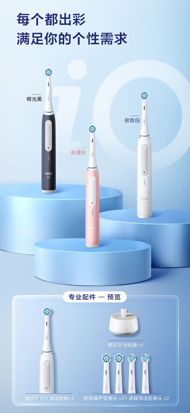 Oral-B Germany imported smart electric toothbrush iO3 ultimate white brush head * 4 root cleansing JD.com self-operated JD.com gold list birthday gift gift giving New Year gift
