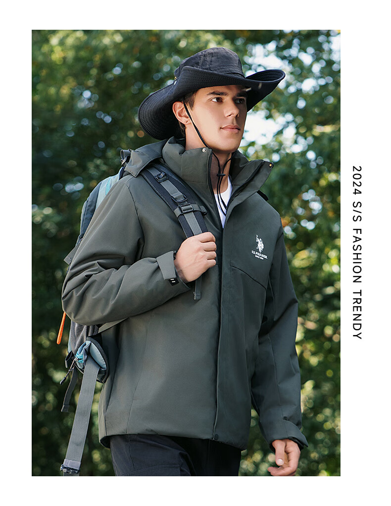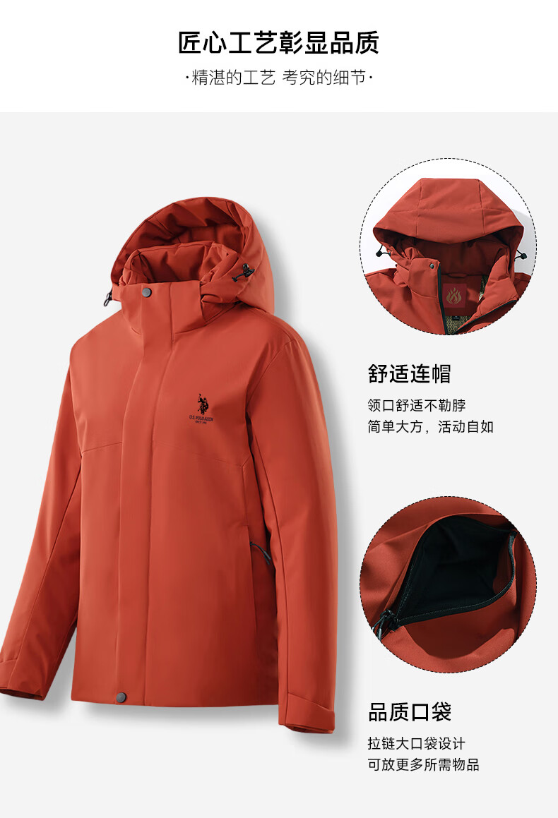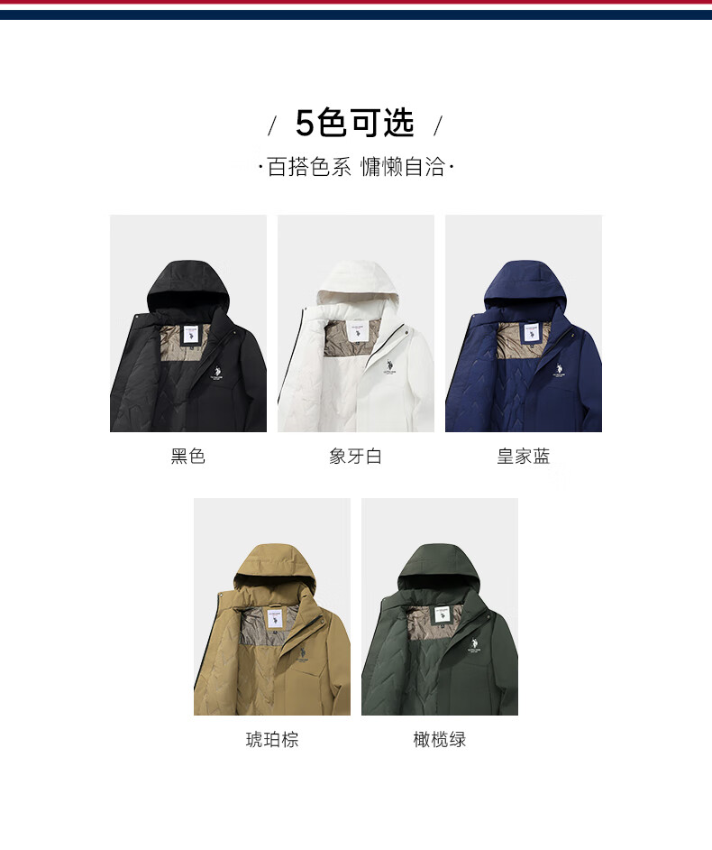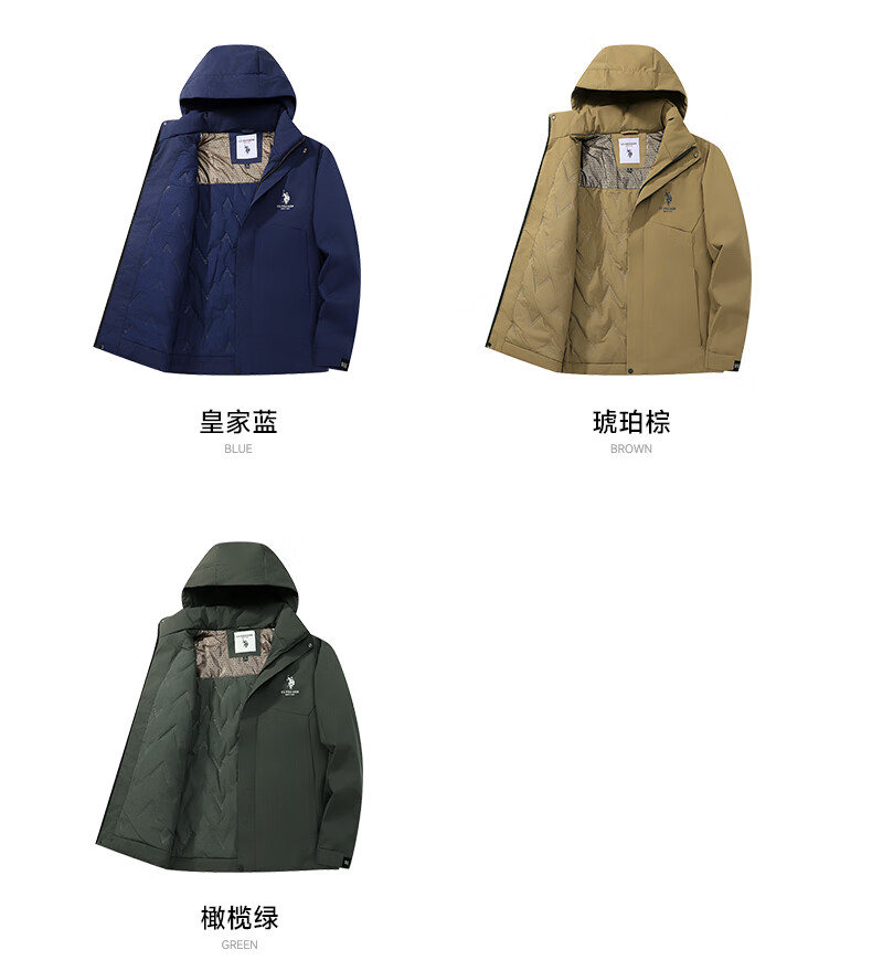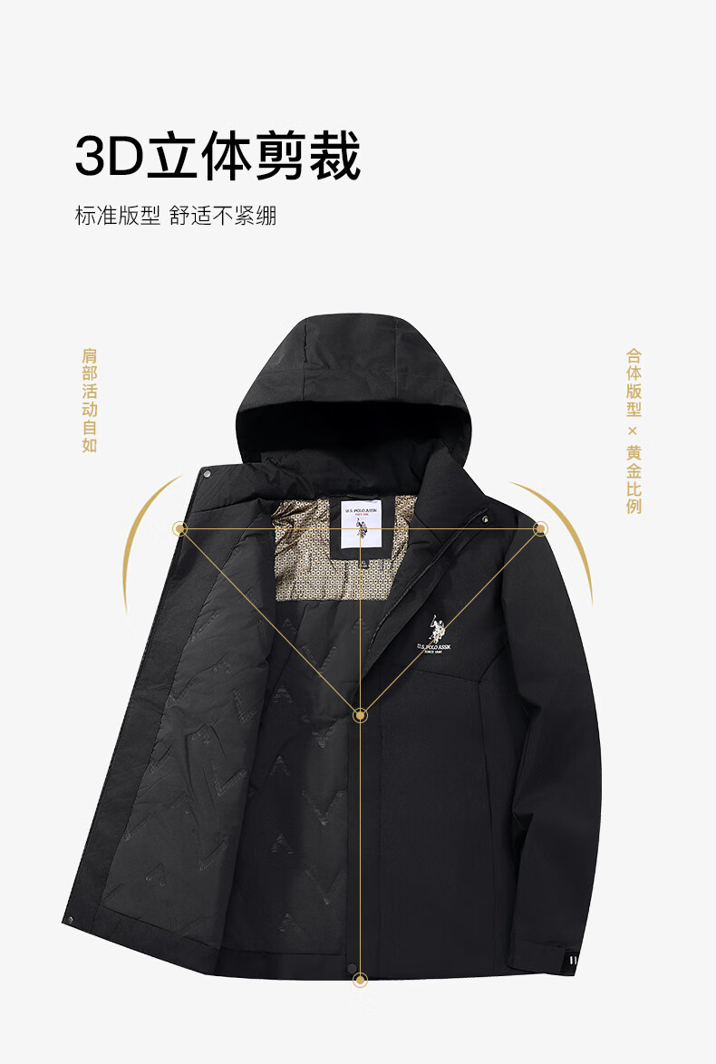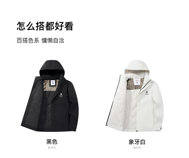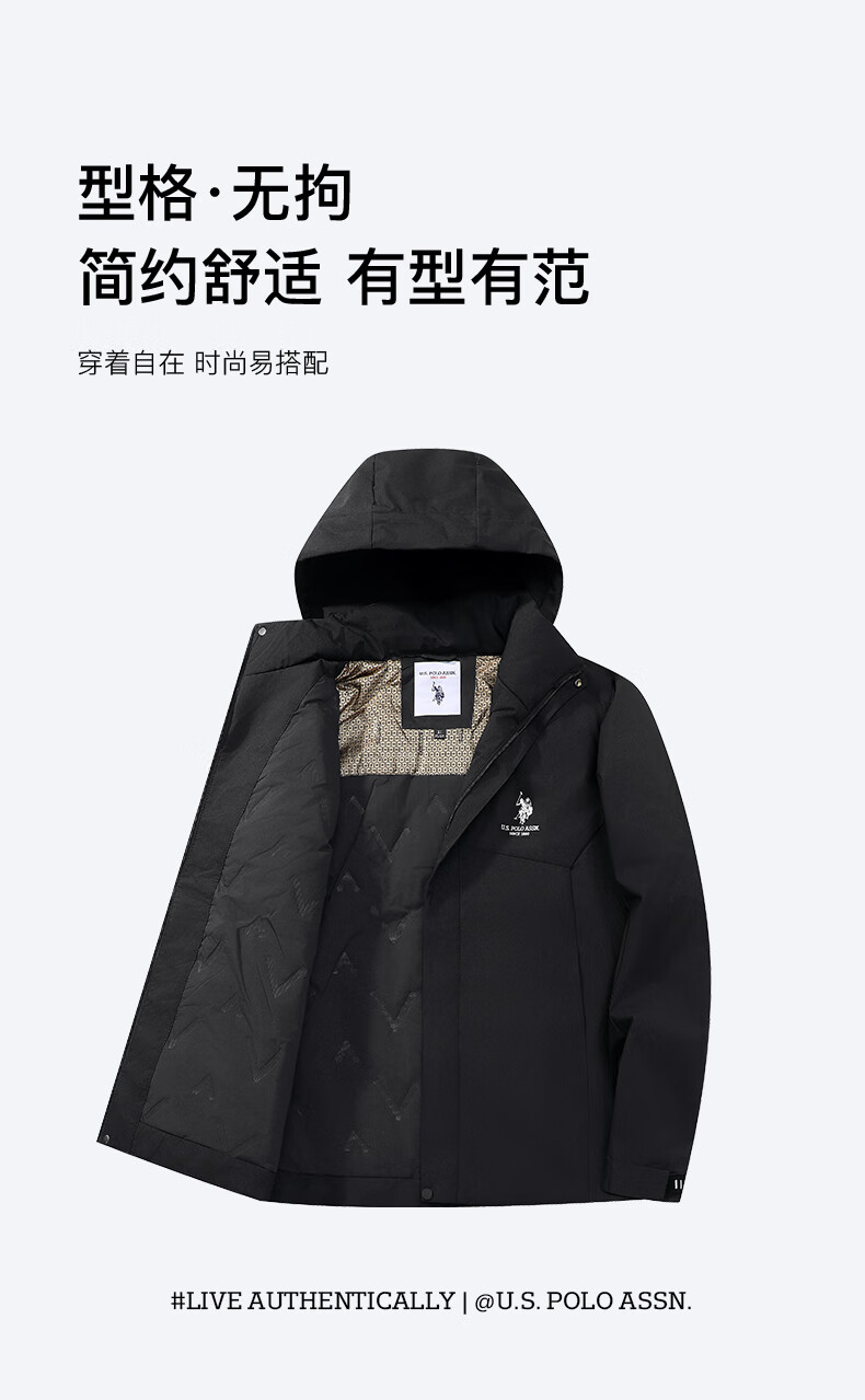 U.S. POLO ASSN. Jacket Men's Hooded Breathable Couple Jacket Thickened Down Cotton Jacket Men's Top Black L