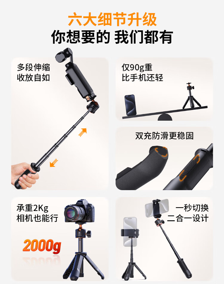 Zhuoer is suitable for DJI DJI Pocket3 tripod DJI bracket gimbal camera extension rod handheld selfie stick portable
