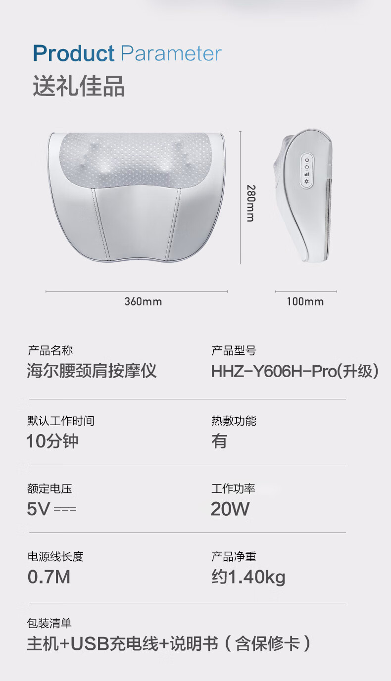 Haier Cervical Massager Waist Massager Massage Pillow Neck Shoulder Neck Back Massage Cushion Neck Legs Foot Whole Body Birthday New Year Gift Practical HHZ-Y606H-Pro