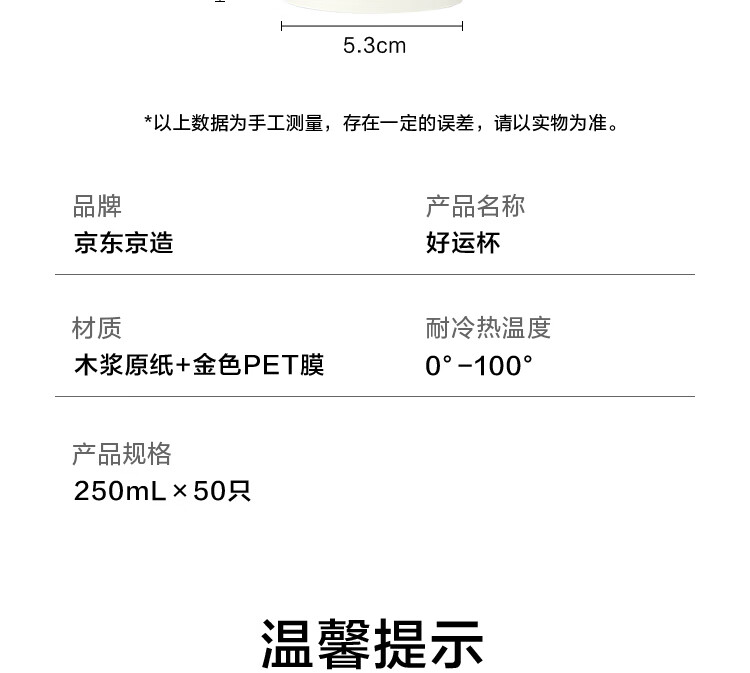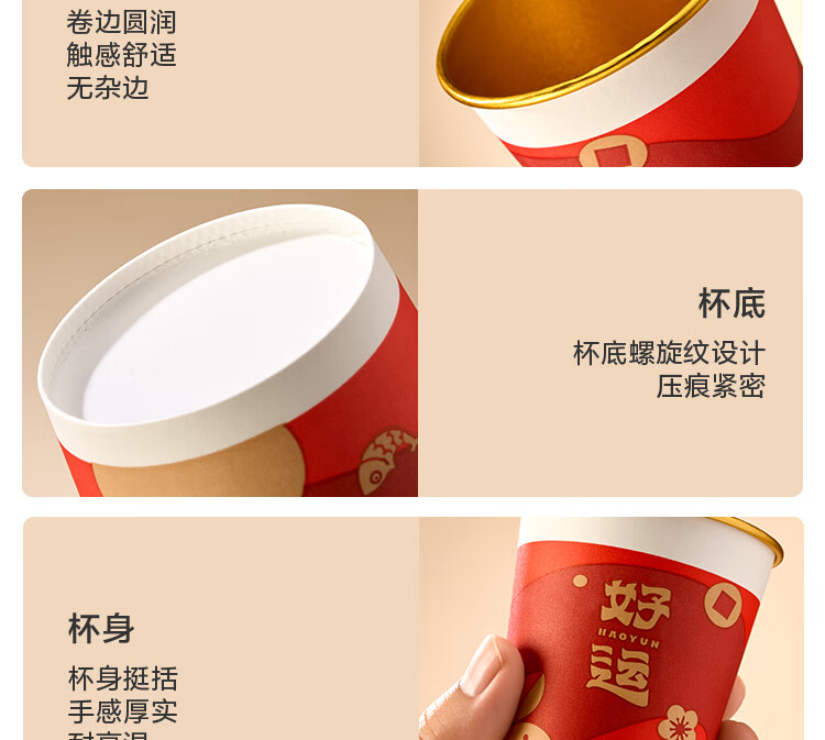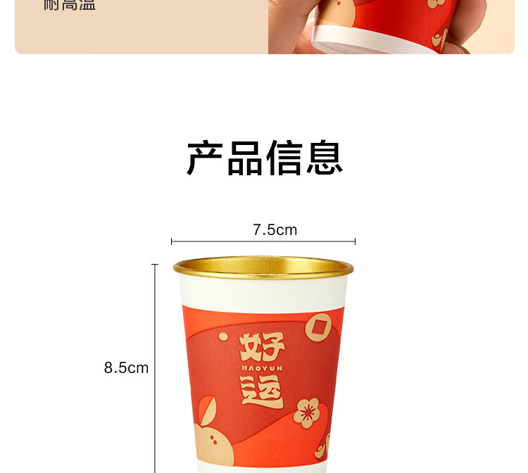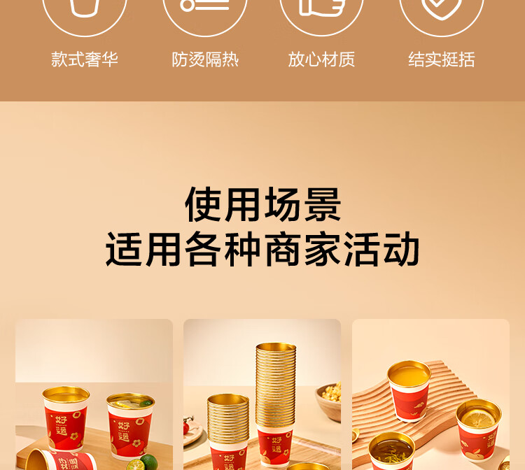Jingdong Good Luck Cup Disposable Paper Cup New Year Wedding Housewarming Gift Cup Gold Foil Water Cup 250ml 50 pieces