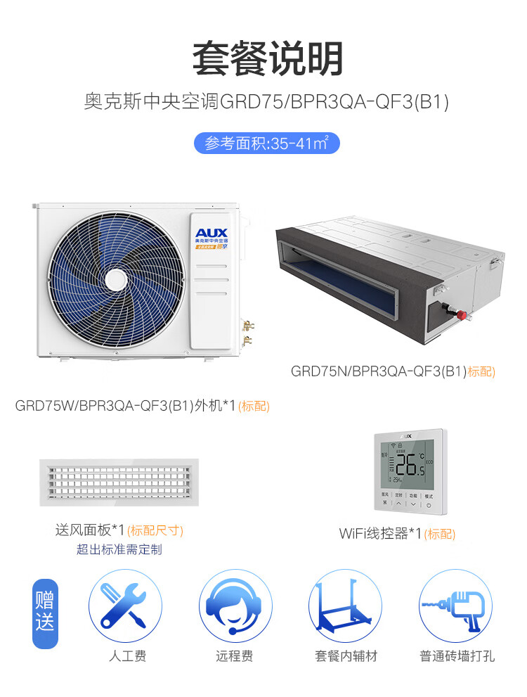 Oaks central air conditioner Qingxiang duct machine one-to-one 3 HP first-class energy efficiency and electricity saving home living room air conditioner GRD75/BPR3QA-QF3 (B1) national subsidy