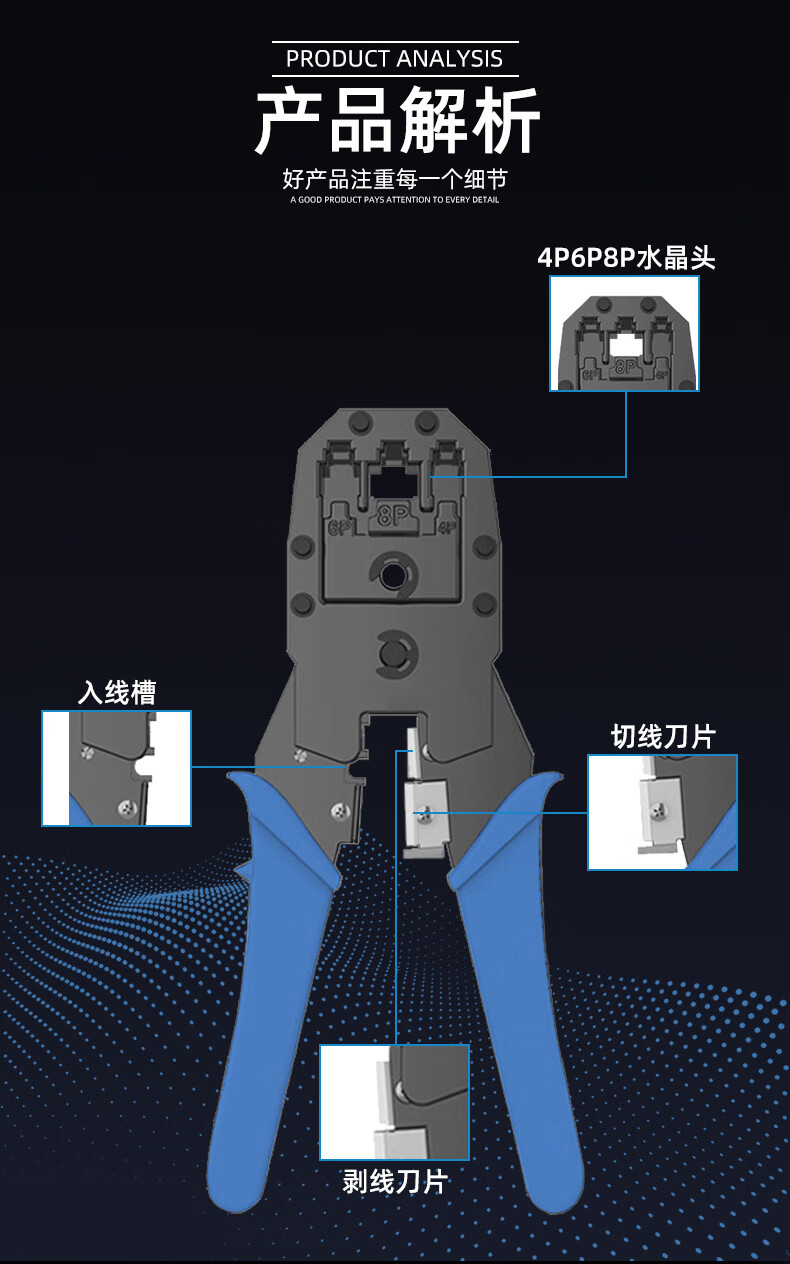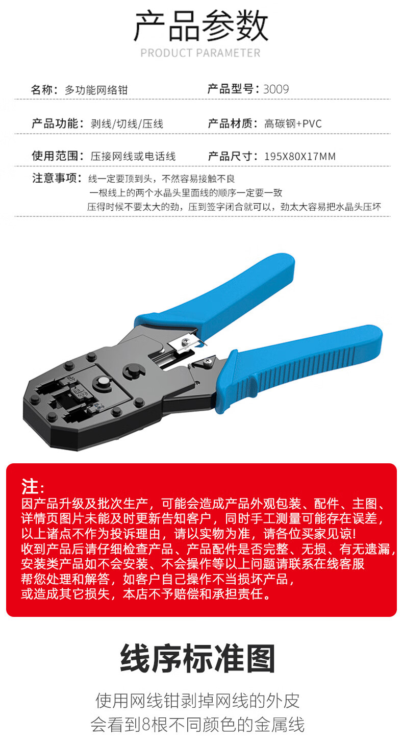 Paola network cable pliers, Internet phone crystal head crimping pliers, three-purpose multi-function labor-saving wire stripping pliers 3009