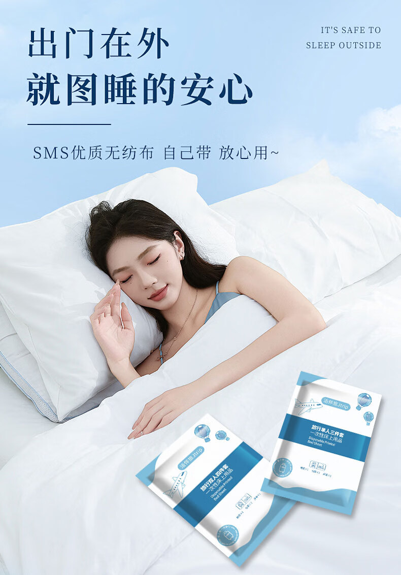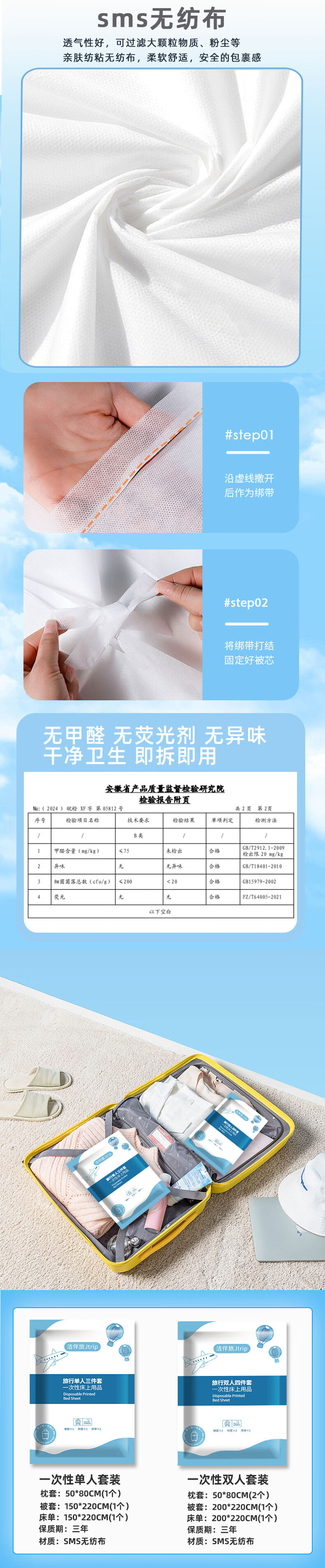 Jiebanlv disposable three-piece bed sheet, quilt cover, pillowcase, hotel bedding set, travel dirt-proof sleeping bag