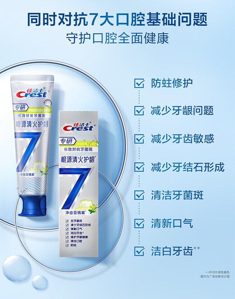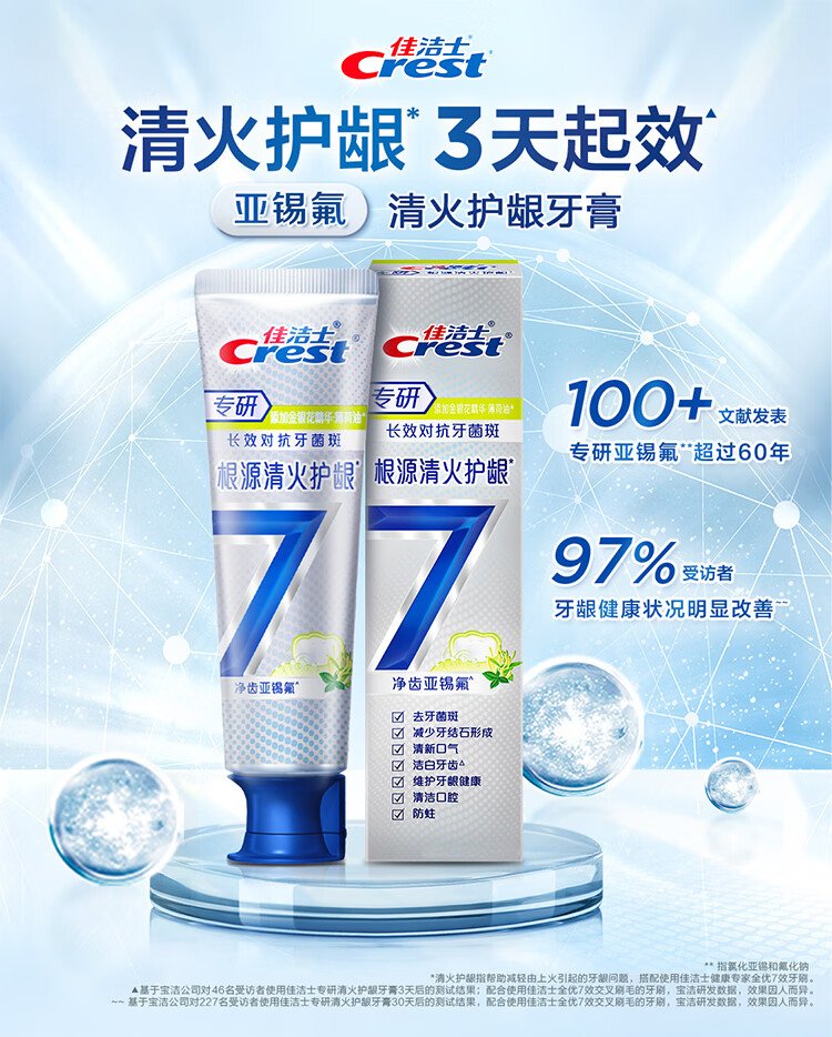 Crest specializes in all-quality 7-effect fire-clearing and gum-protecting toothpaste 120g*2