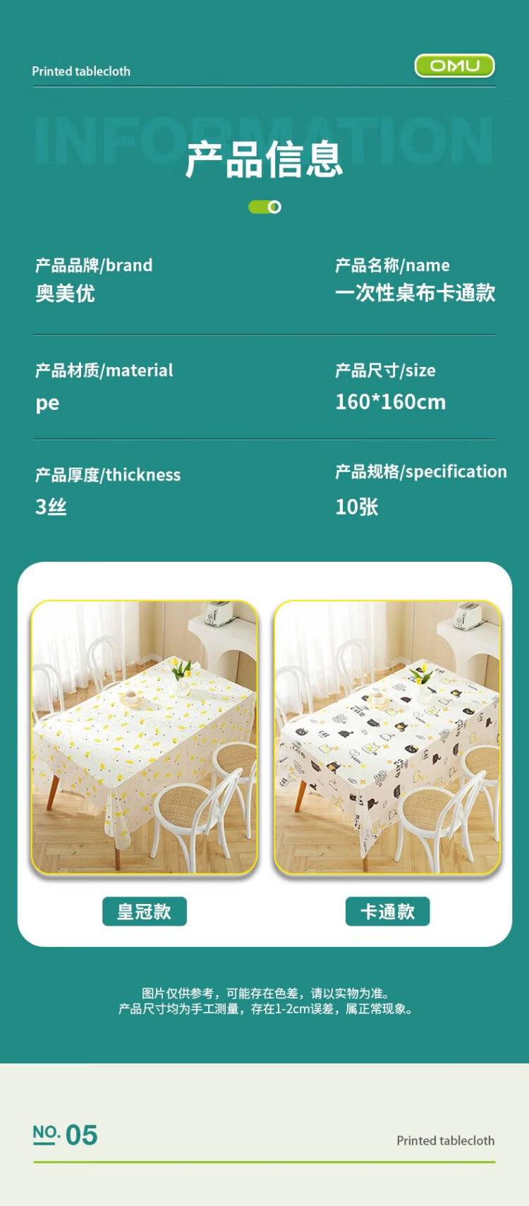 Ogilvy disposable tablecloth kindergarten party ins small fresh printed plastic waterproof tablecloth household cartoon style 10 sheets