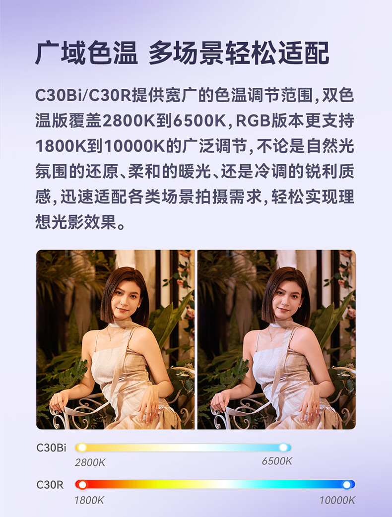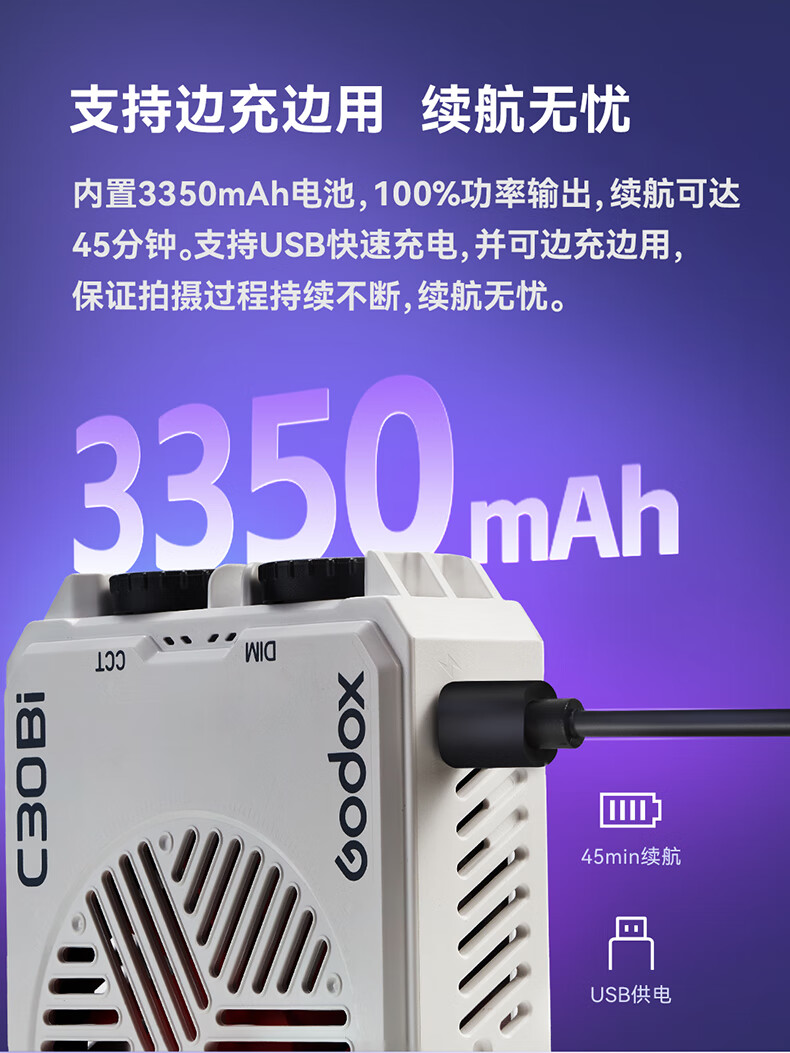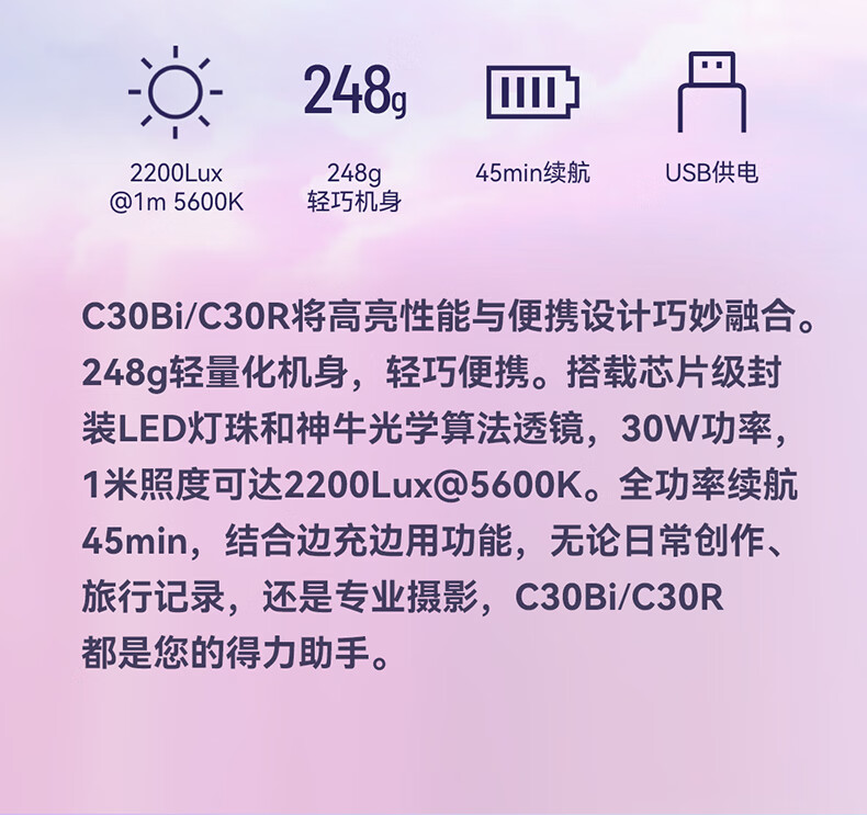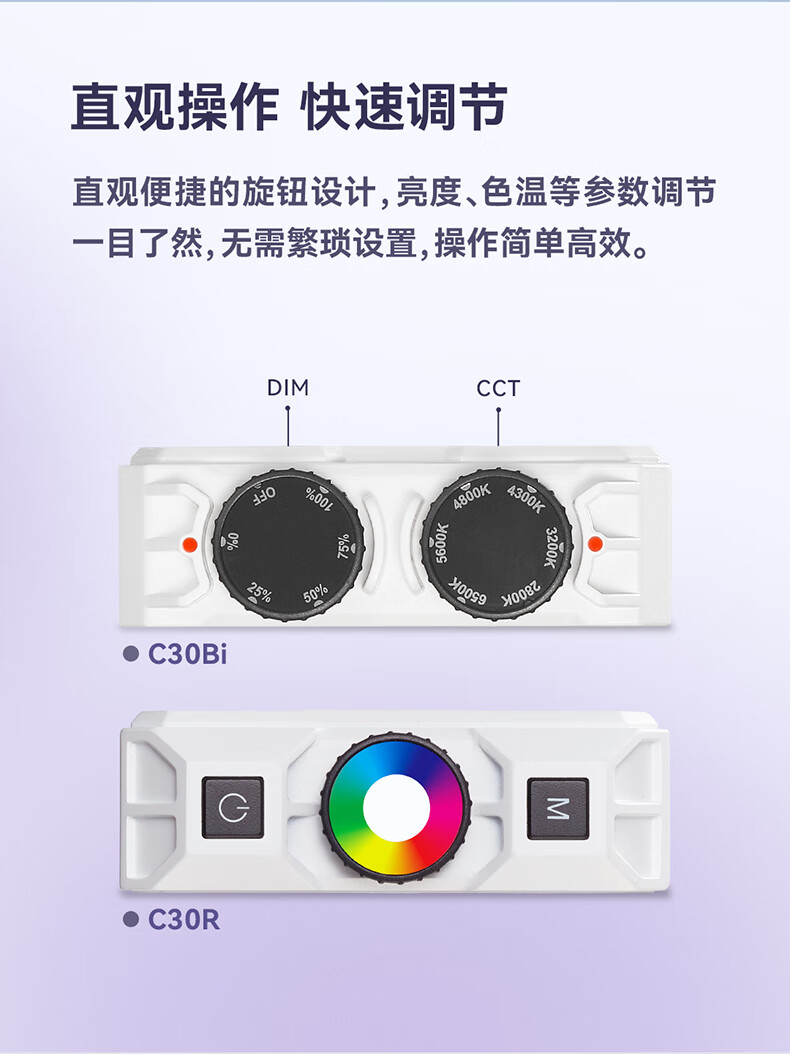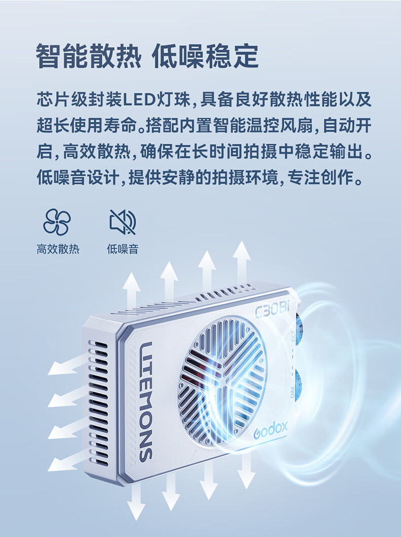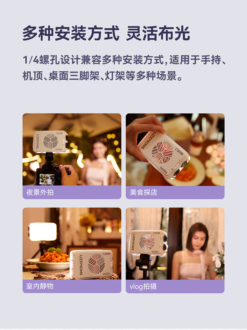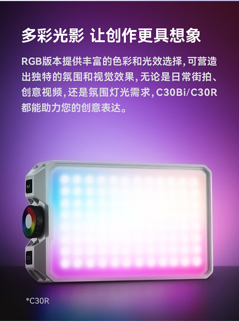 Godox C30Bi fill light, lightweight, portable lighting, ambient light, live broadcast, food photography, short video, outdoor LED mini light
