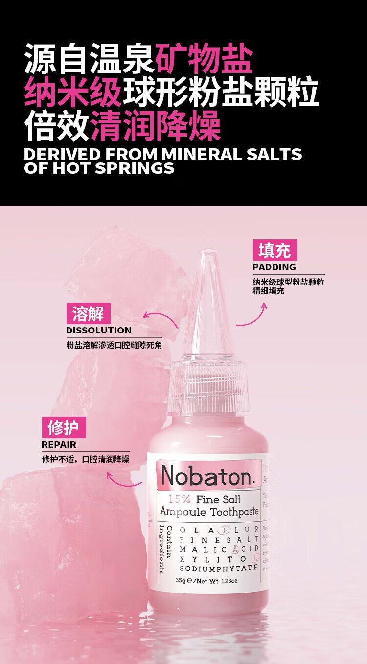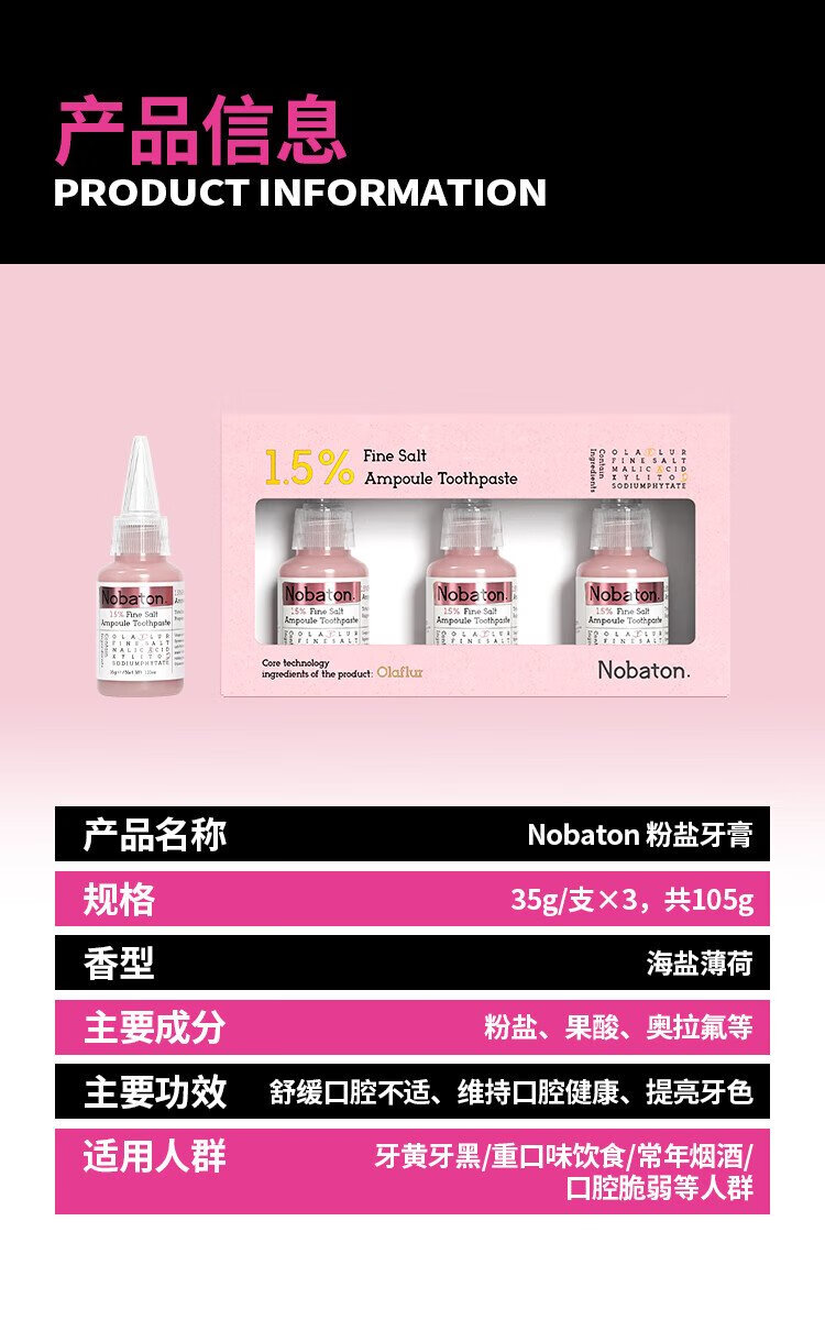 Norbaton Farm French 1.5% pink salt toothpaste whitens bad breath, freshens breath, protects gums, removes yellow teeth, tooth reducing agent ampoule