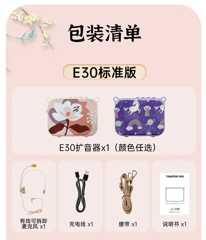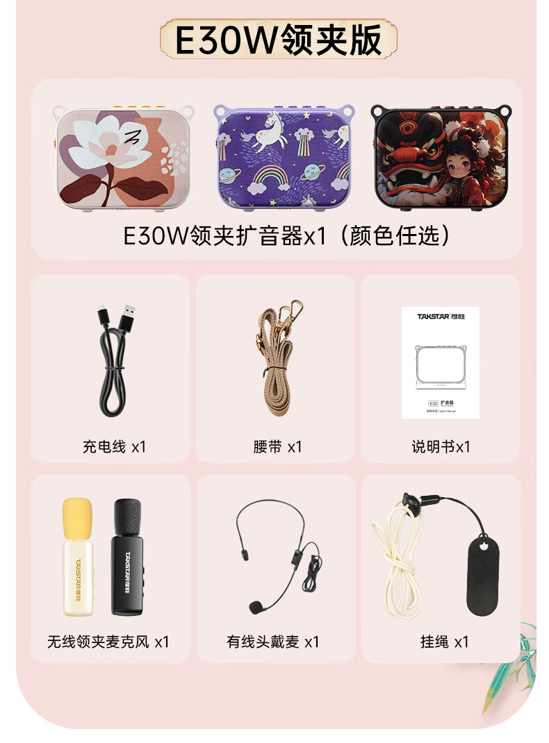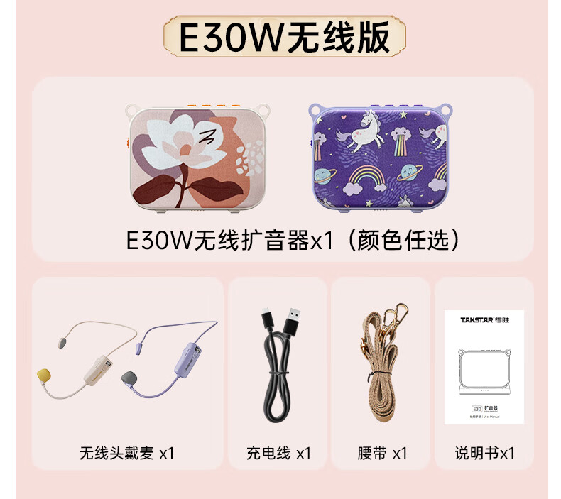 TAKSTAR E30W Wireless Little Bee Amplifier Teacher's Special Guide Speaker Waist Hanging Portable Chinese Style Bluetooth Small Speaker Megaphone Wireless Lecture Microphone Rouyuebai