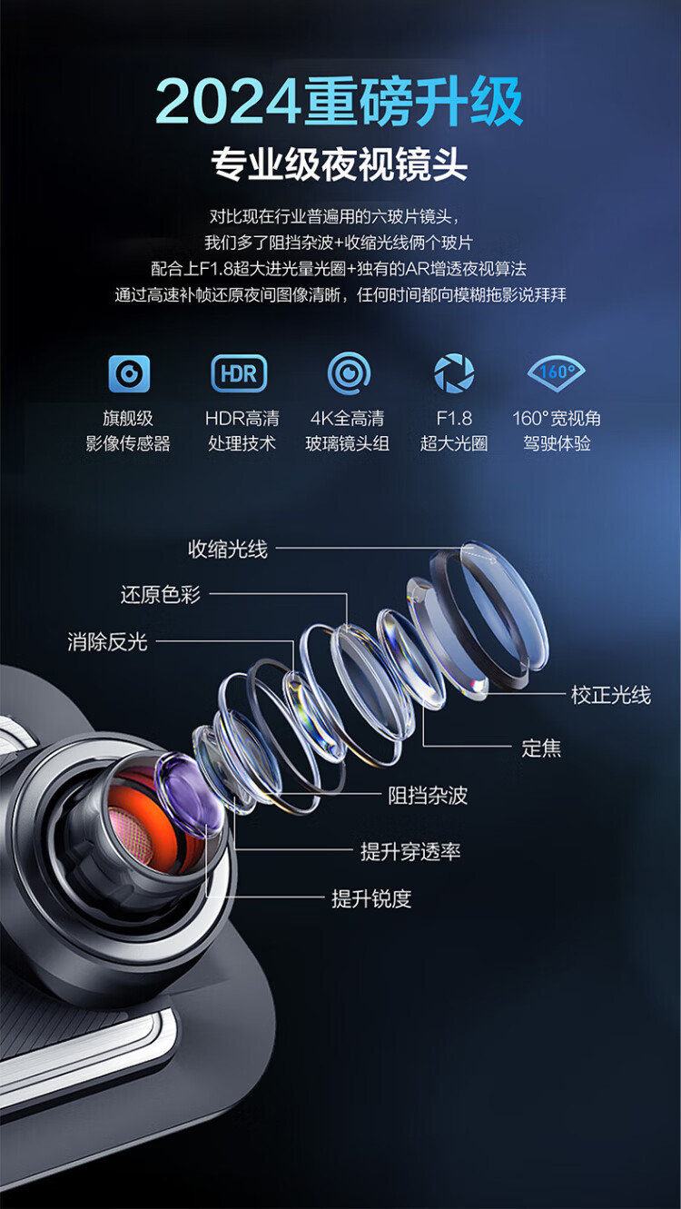 Patriot 4K ultra-clear Patriot driving recorder dual-records 360-degree panoramic front and rear reversing images without wiring