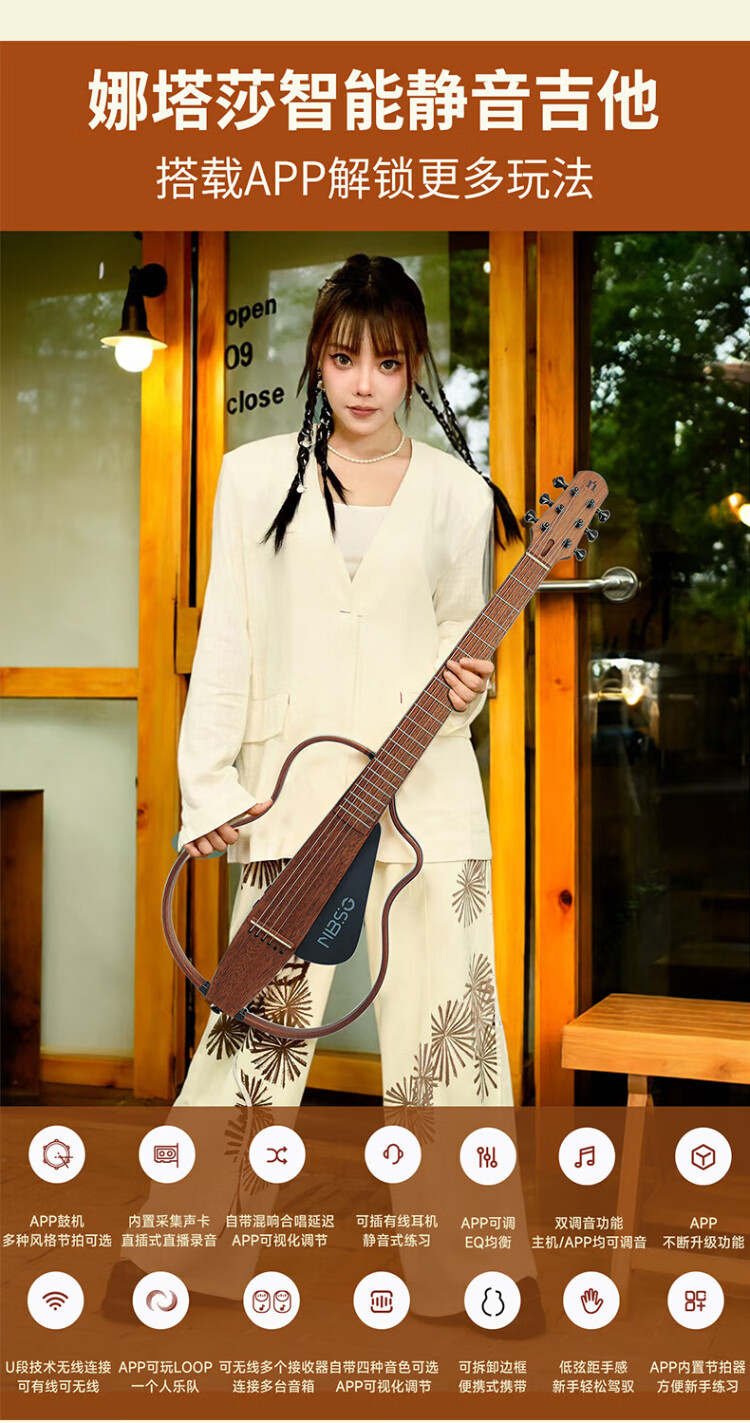 Natasha MSG mahogany core 39-inch smart silent folk steel string classical nylon stage electric box guitar