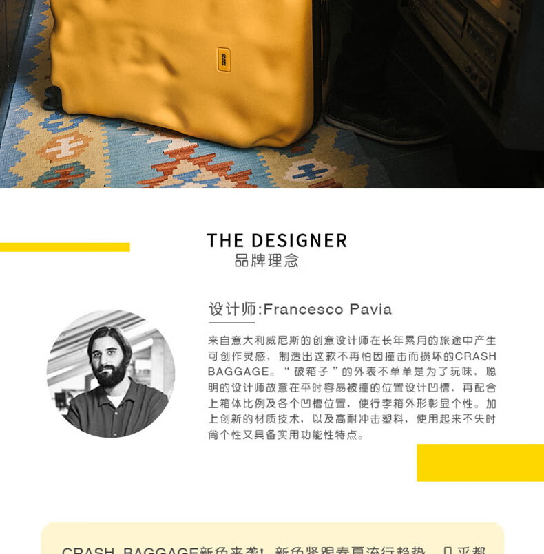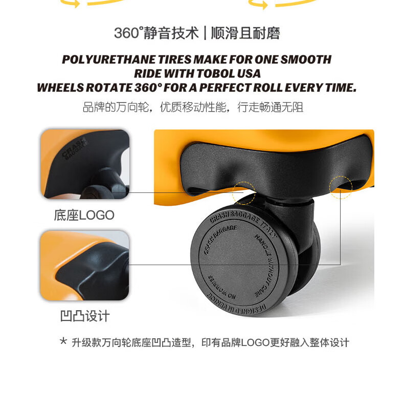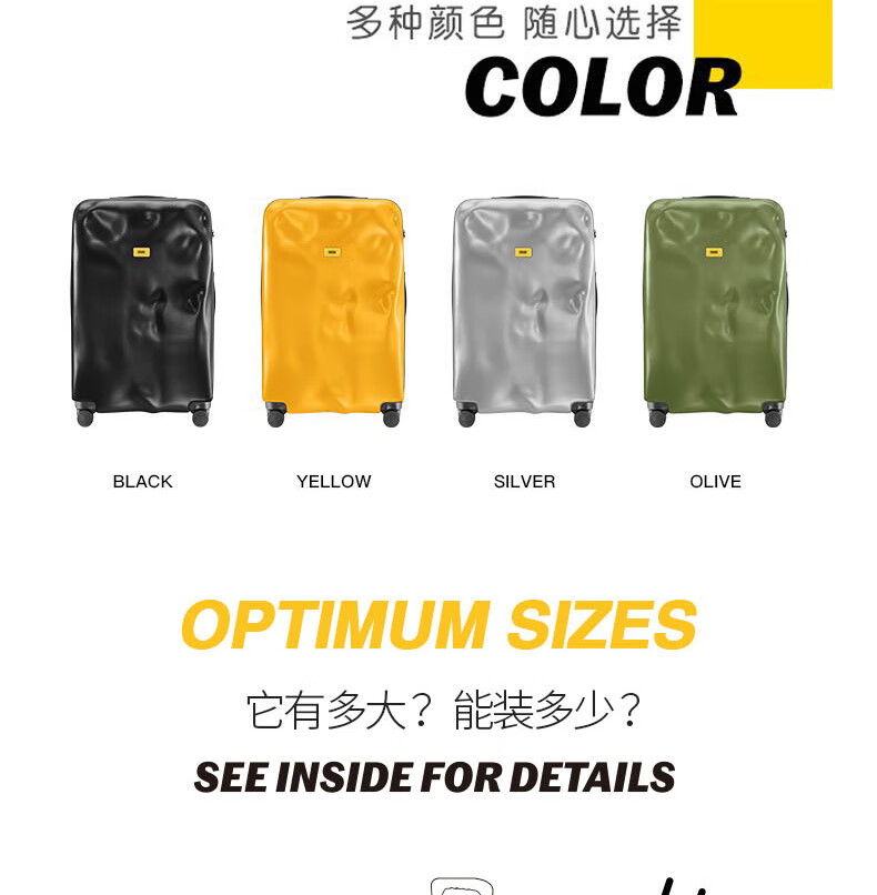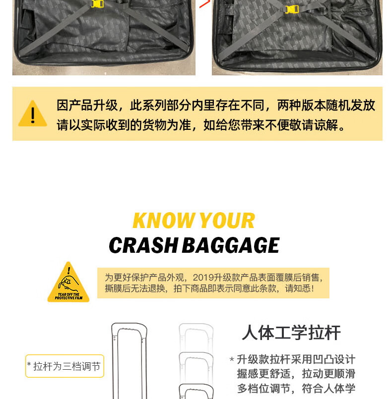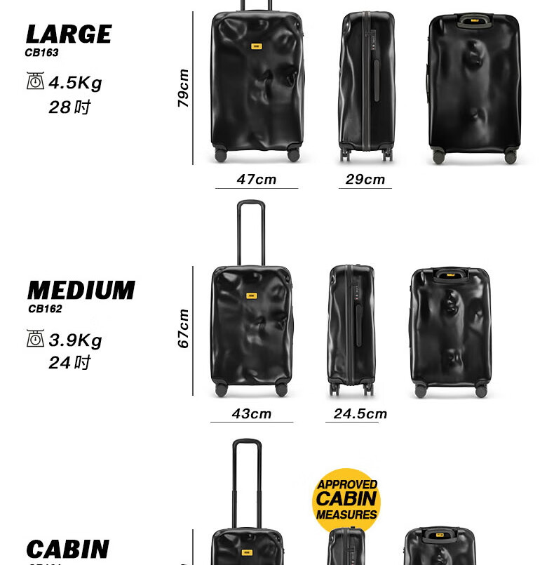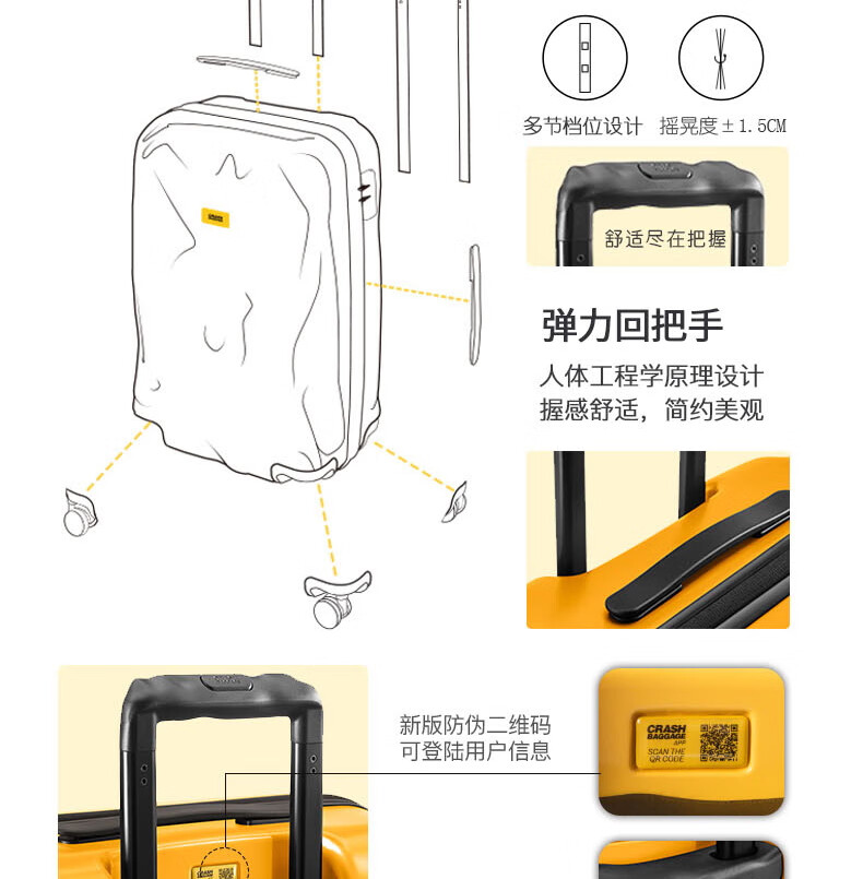 CRASH BAGGAGE Italian concave and convex luggage suitcase, boarding case, trolley case for men and women, silver 24 inches