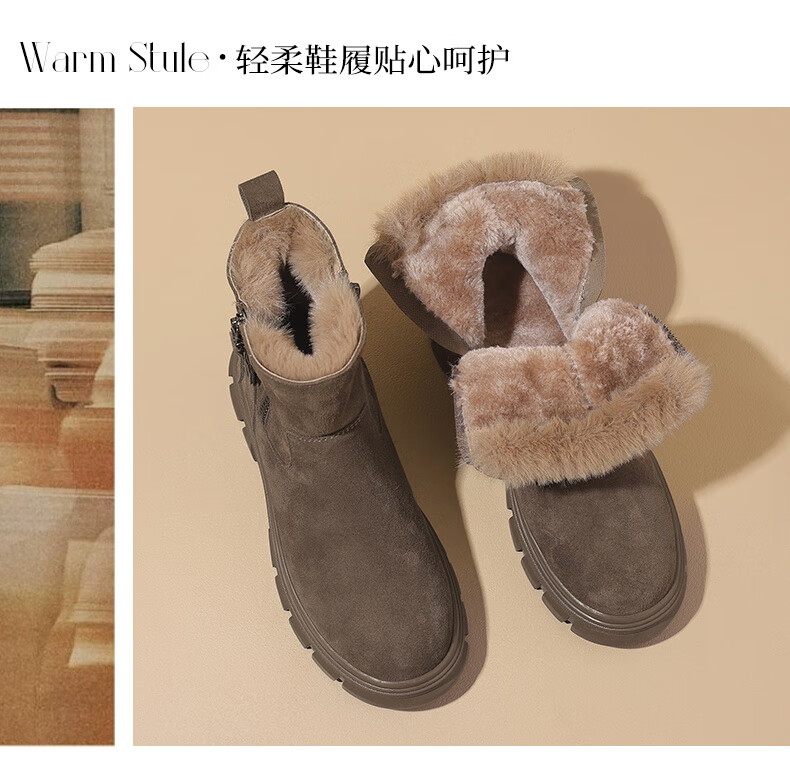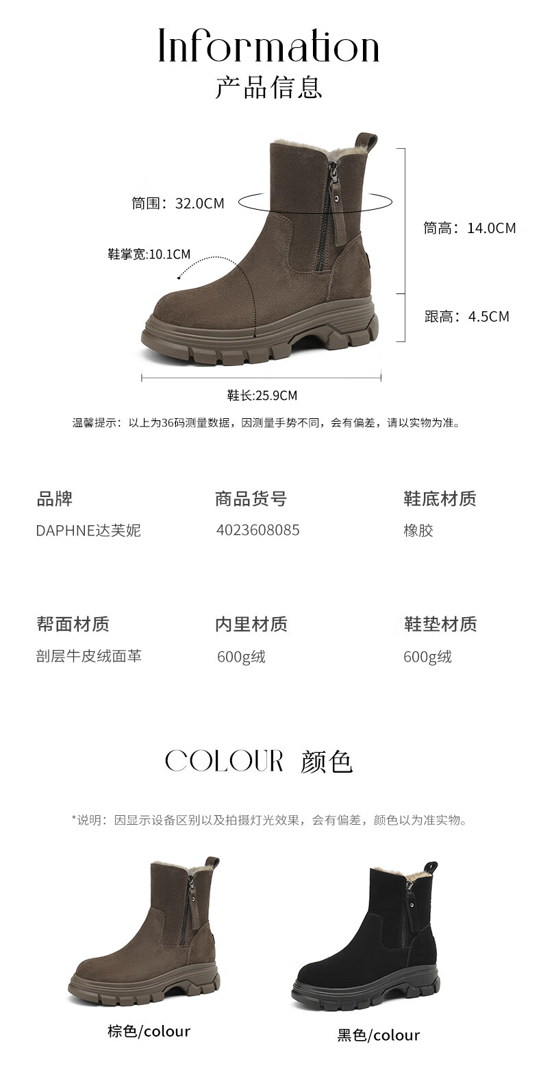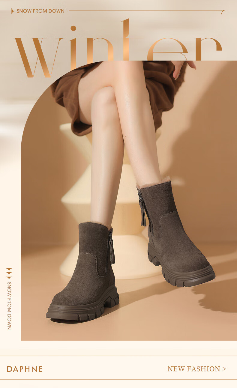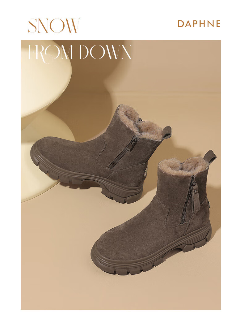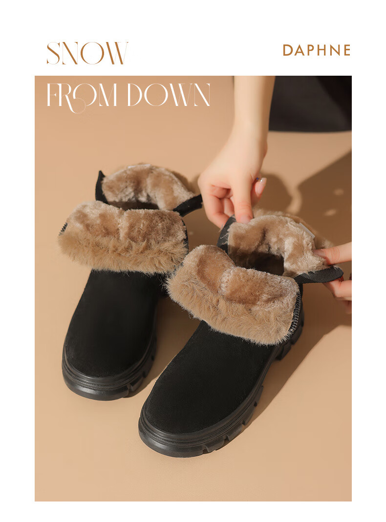 Daphne snow boots women's winter velvet thickened warm short boots Northeast large cotton shoes 4023608085 Brown 38