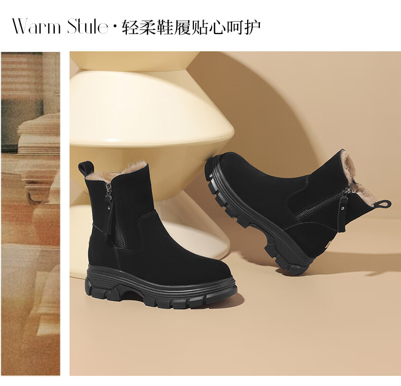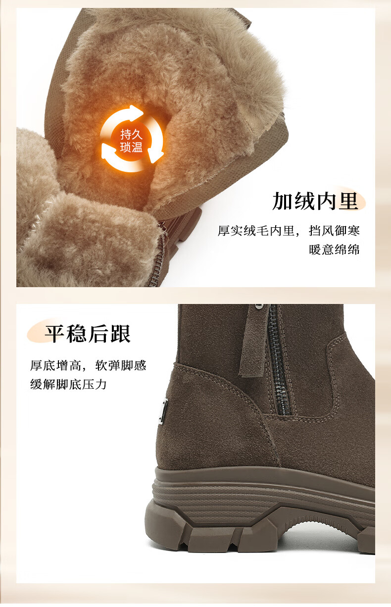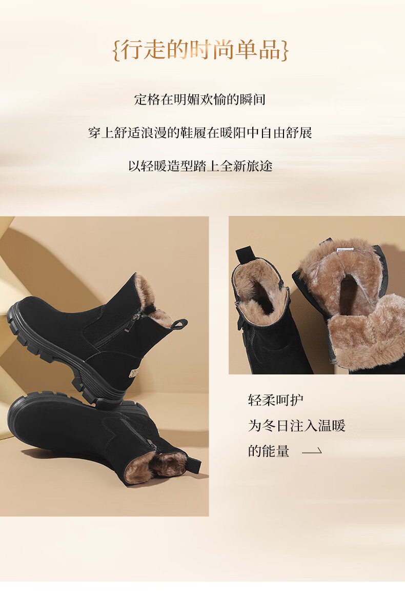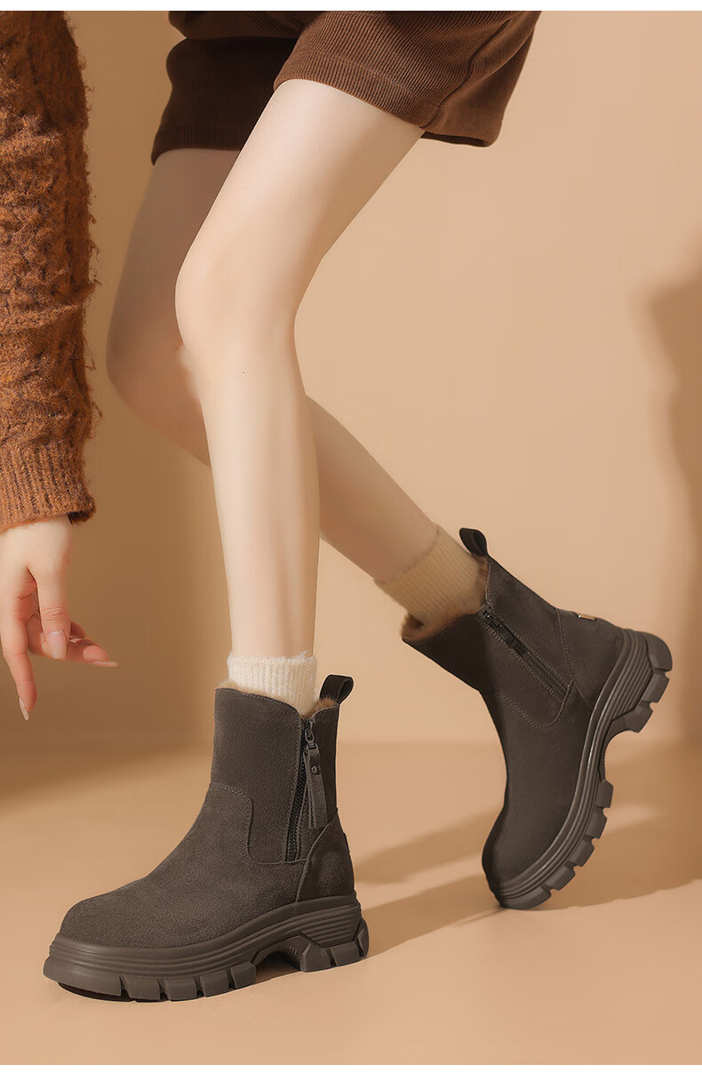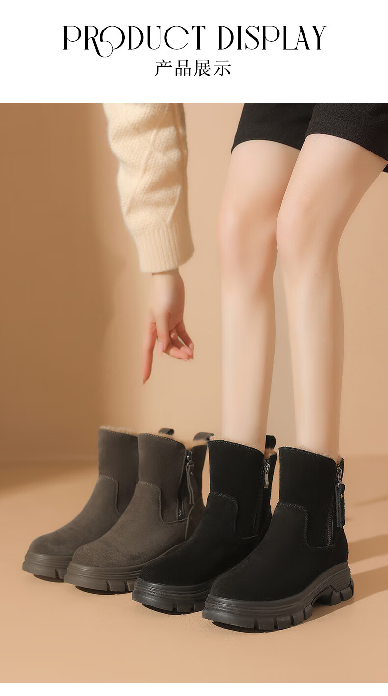 Daphne snow boots women's winter velvet thickened warm short boots Northeast large cotton shoes 4023608085 Brown 38