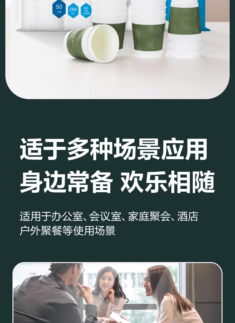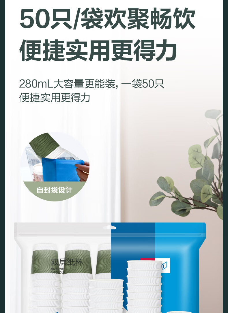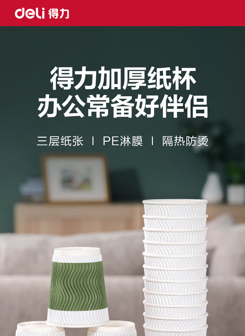 Deli (deli) 50 pieces 280ml thickened three-layer disposable cups water cups paper cups office coffee home anti-scald office water cups