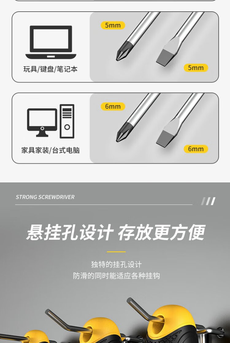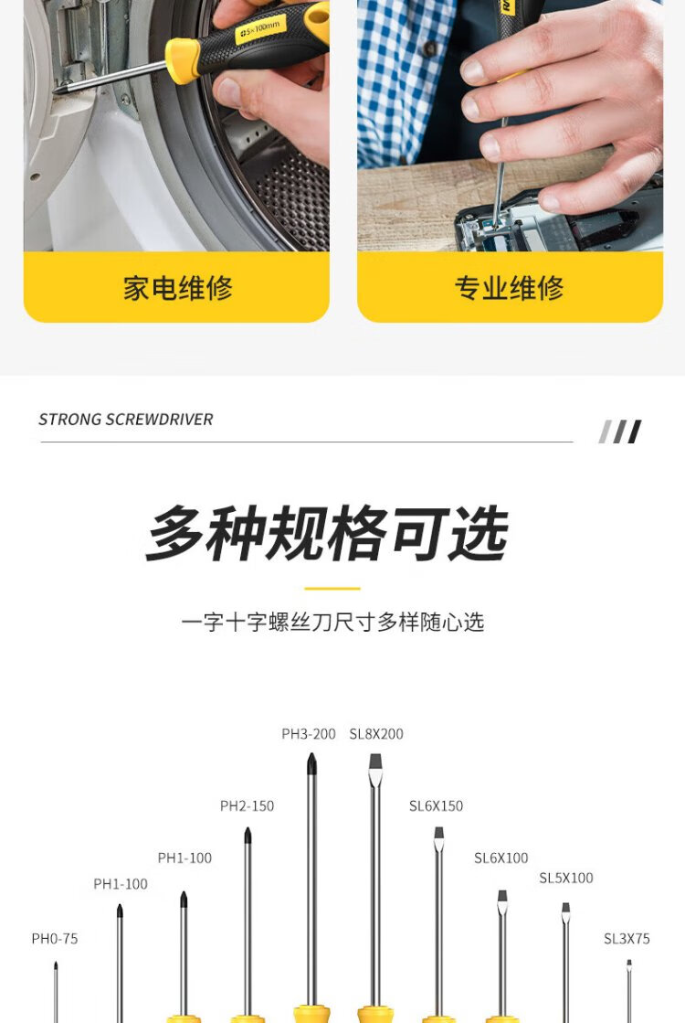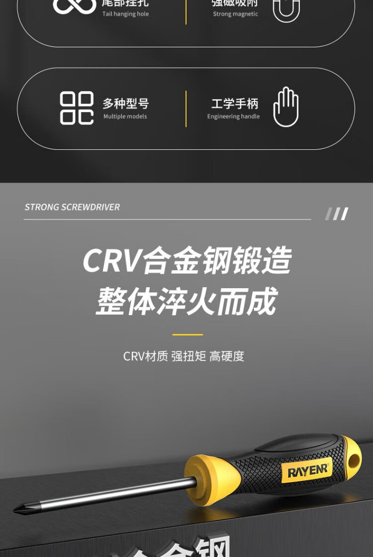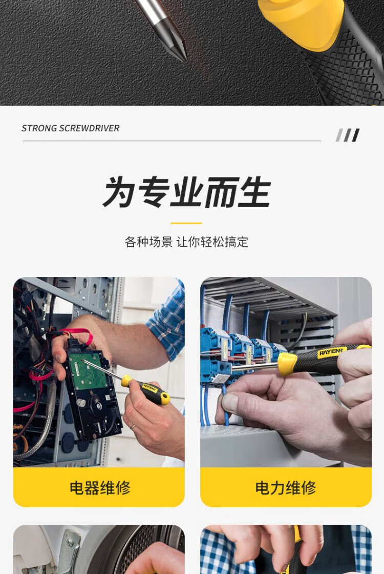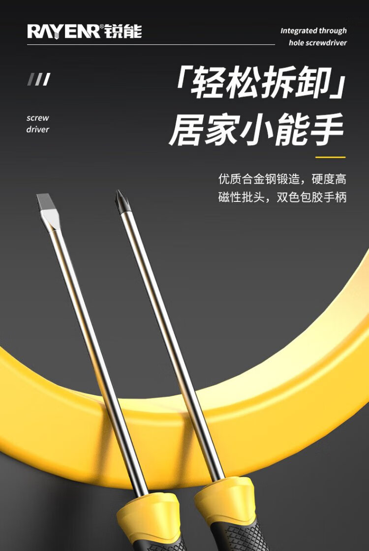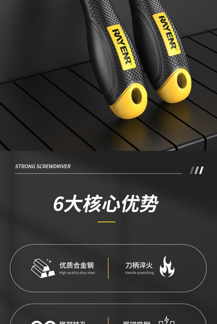 Ruineng screwdriver set strong magnetic cross-shaped 6-piece 6*150+5*100+3*75mm screwdriver repair tool