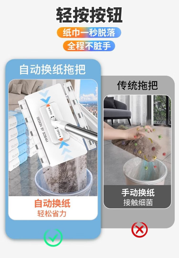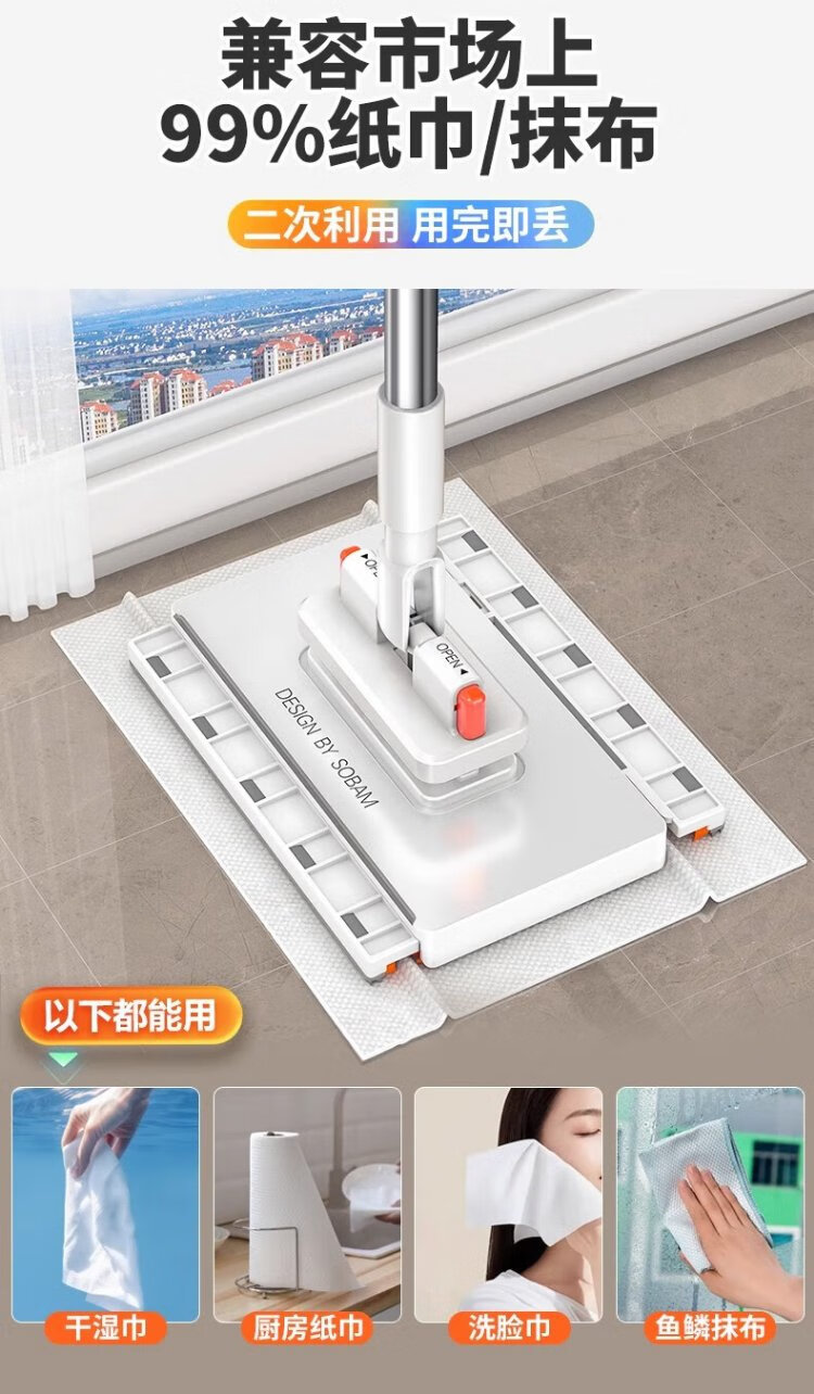 Sorbonne face towel mop 16cm flat mopping machine for lazy people, household one-mop, hand-wash-free mini cloth mop