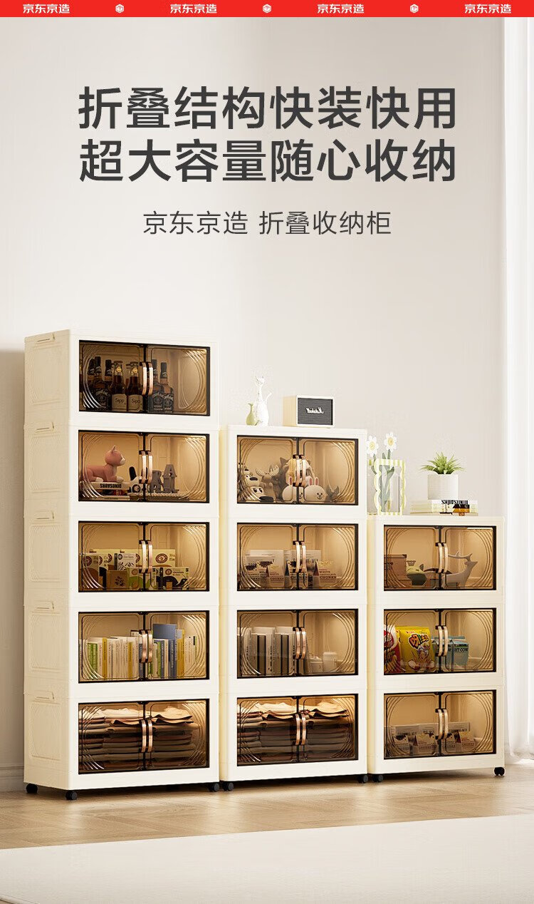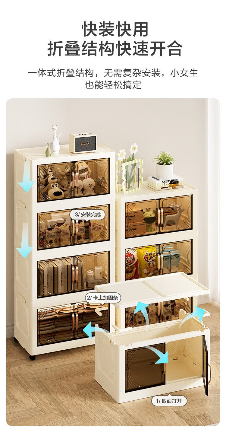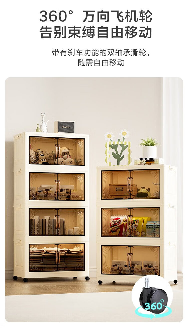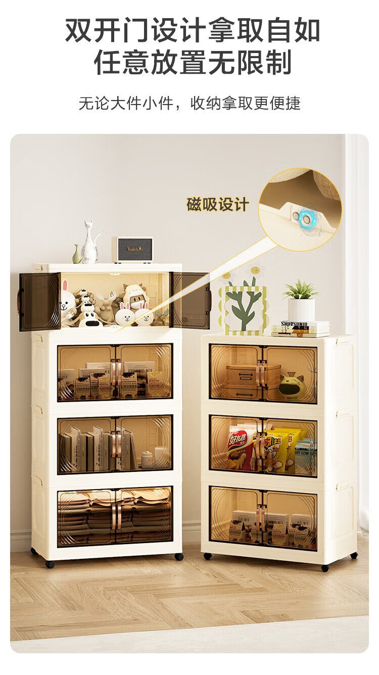 Jingdong-made installation-free storage cabinet with wheels, foldable magnetic large-capacity storage cabinet, bedside table, 55cm wide, three layers
