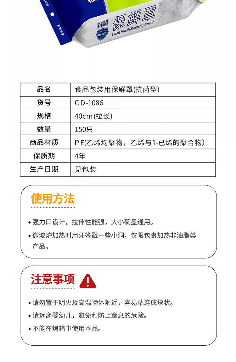 Clinlai disposable antibacterial food grade cling film cover 150 pieces for kitchen outdoor picnic dust bag size dishes universal