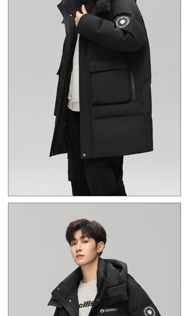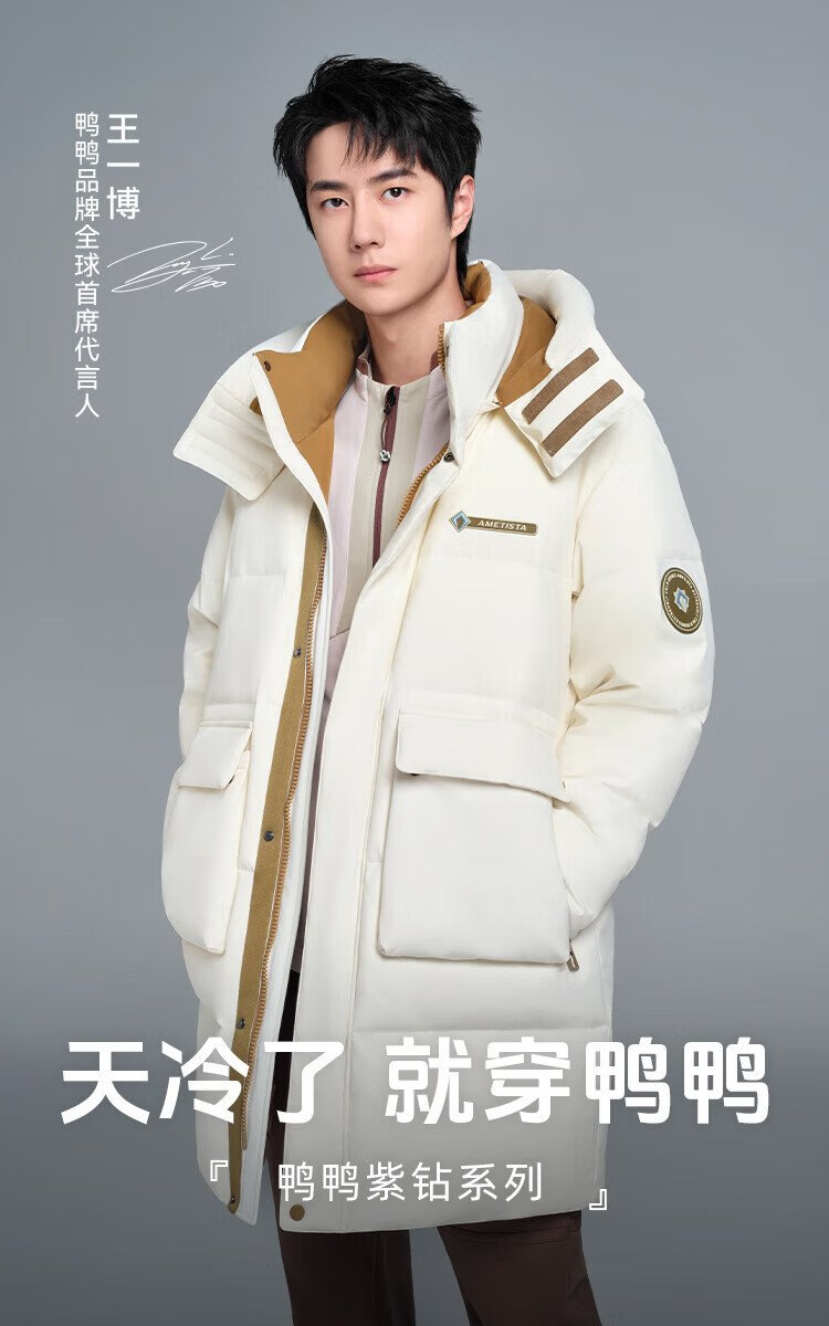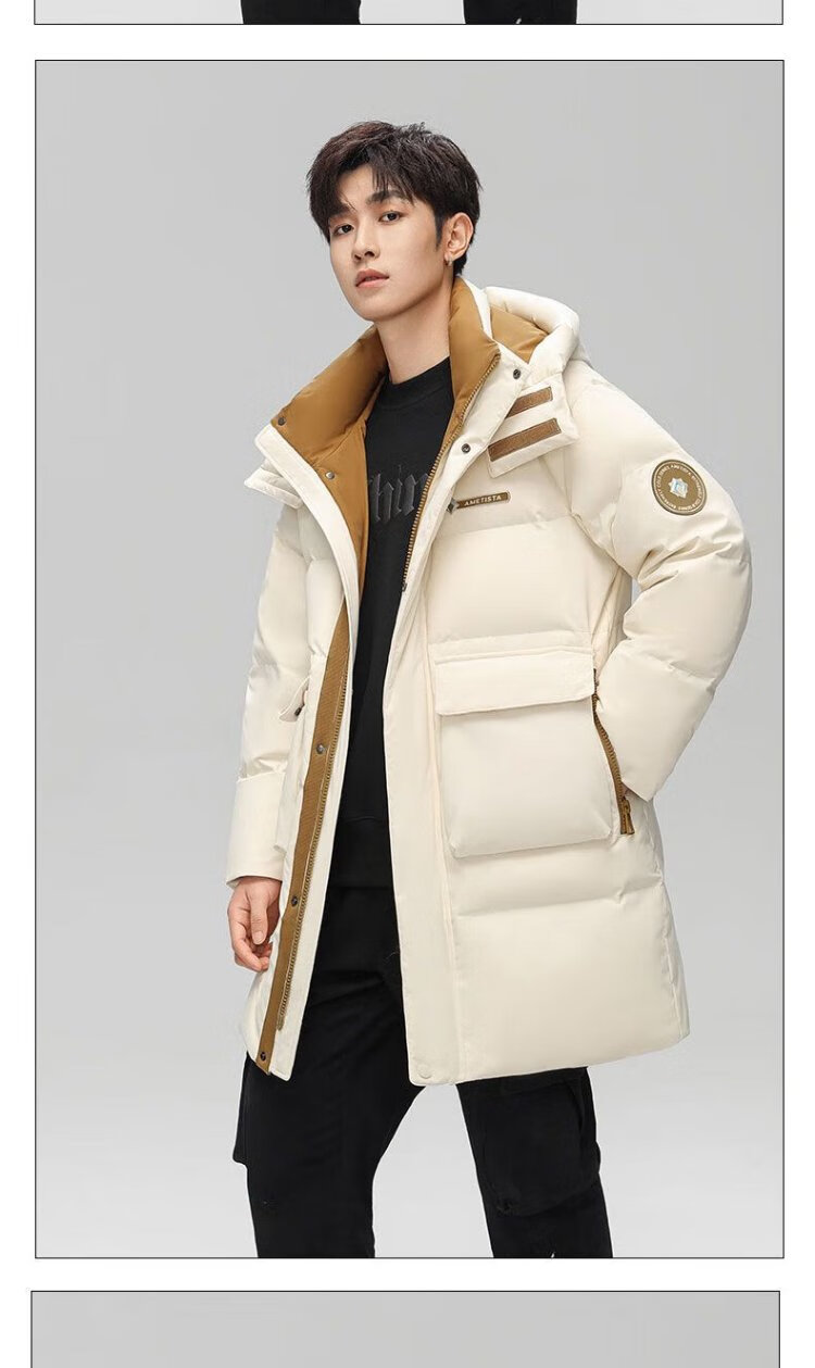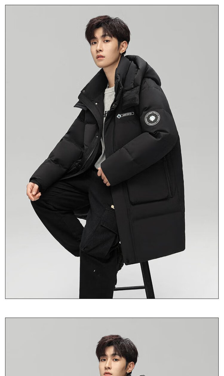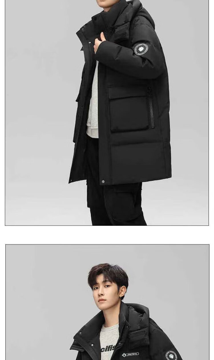 Duck King Yibo star's same duck down jacket men's mid-length winter hooded thickened casual warm jacket trend