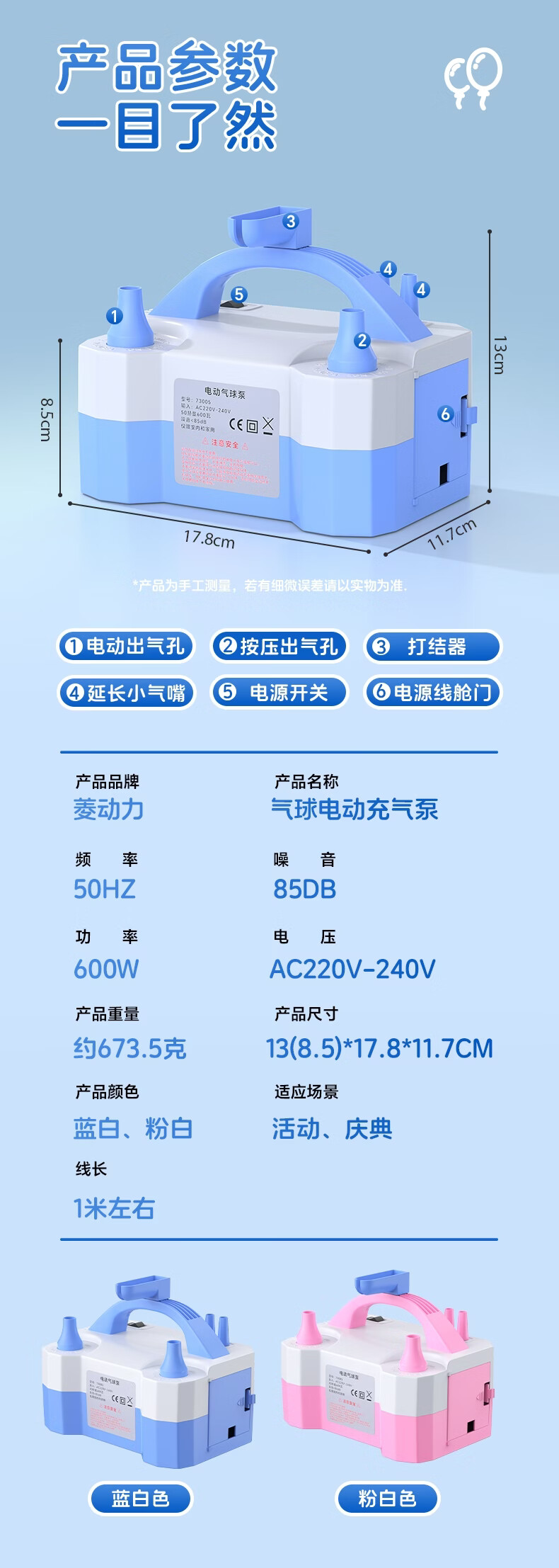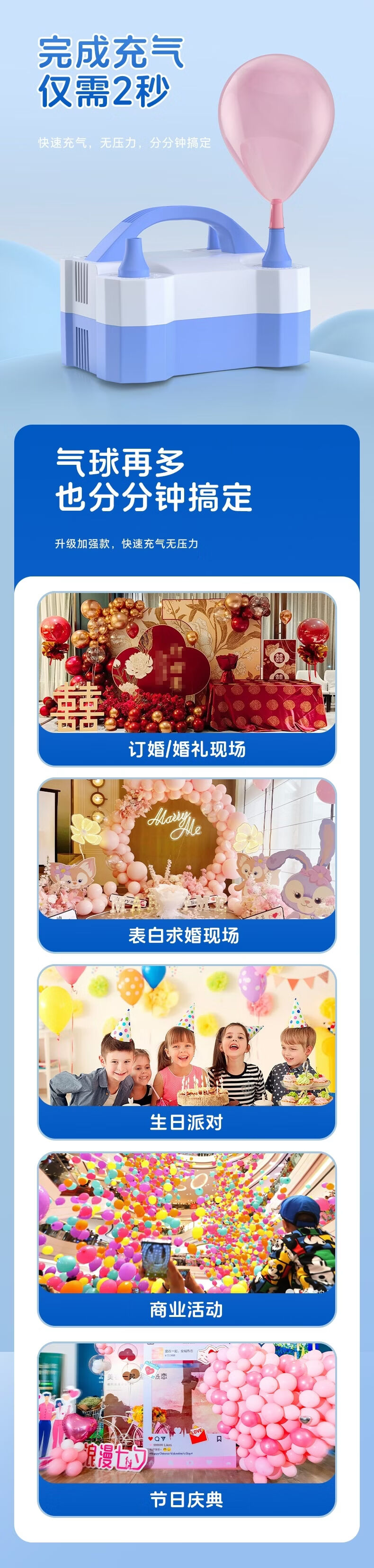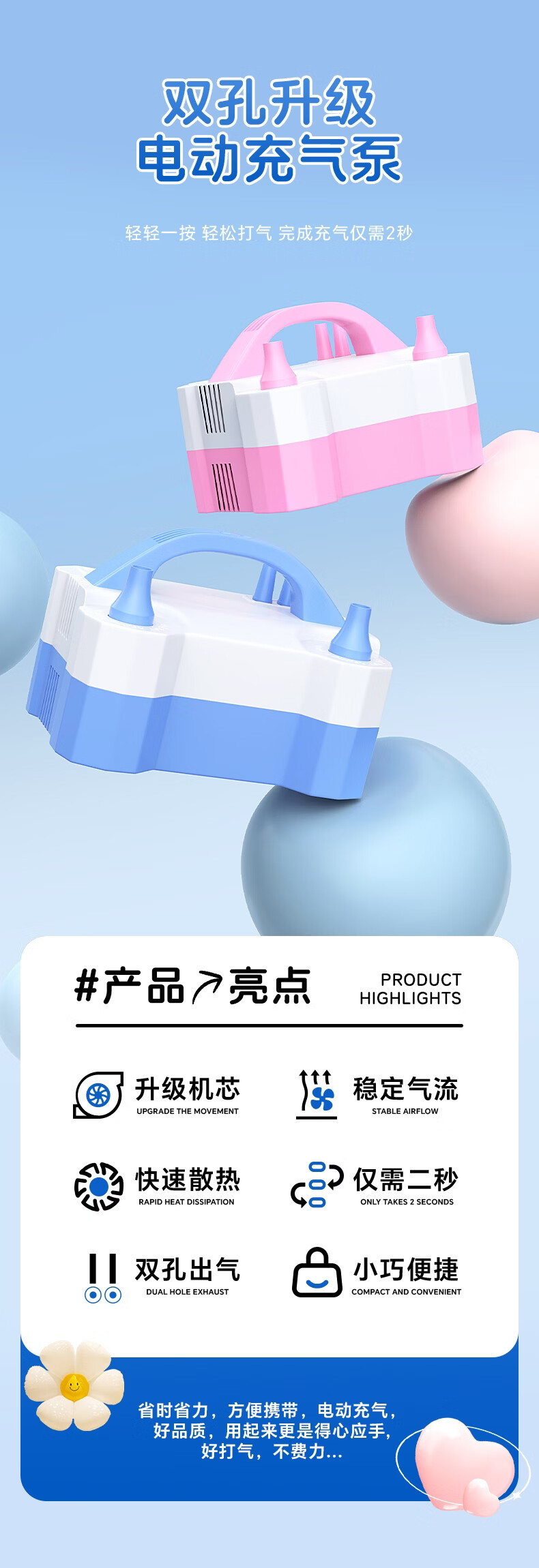 Diamond Power Balloon Inflatable Pump Electric Inflator Double Hole Inflatable Household Event Request Wedding Decoration Confession Birthday Arrangement