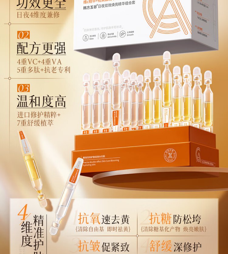 Korean herbal grain whitening, hydrating and moisturizing second-throw serum, anti-oxidant, dark spots, dullness, yellowing, brightening, firming, anti-aging and anti-aging for women