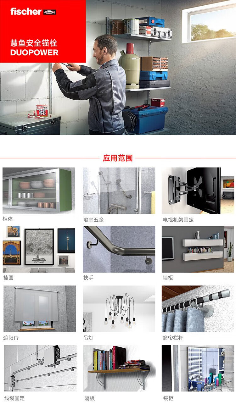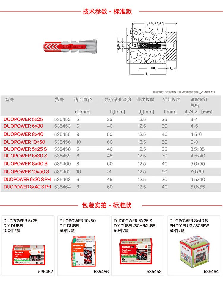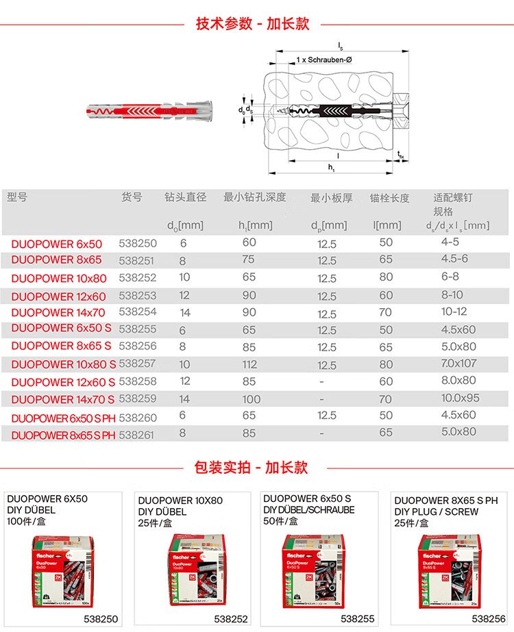 Fischer German original imported Duopower expansion screw lightweight brick hollow brick gypsum board universal box 10x80+7x107 original nails 10 sets/box
