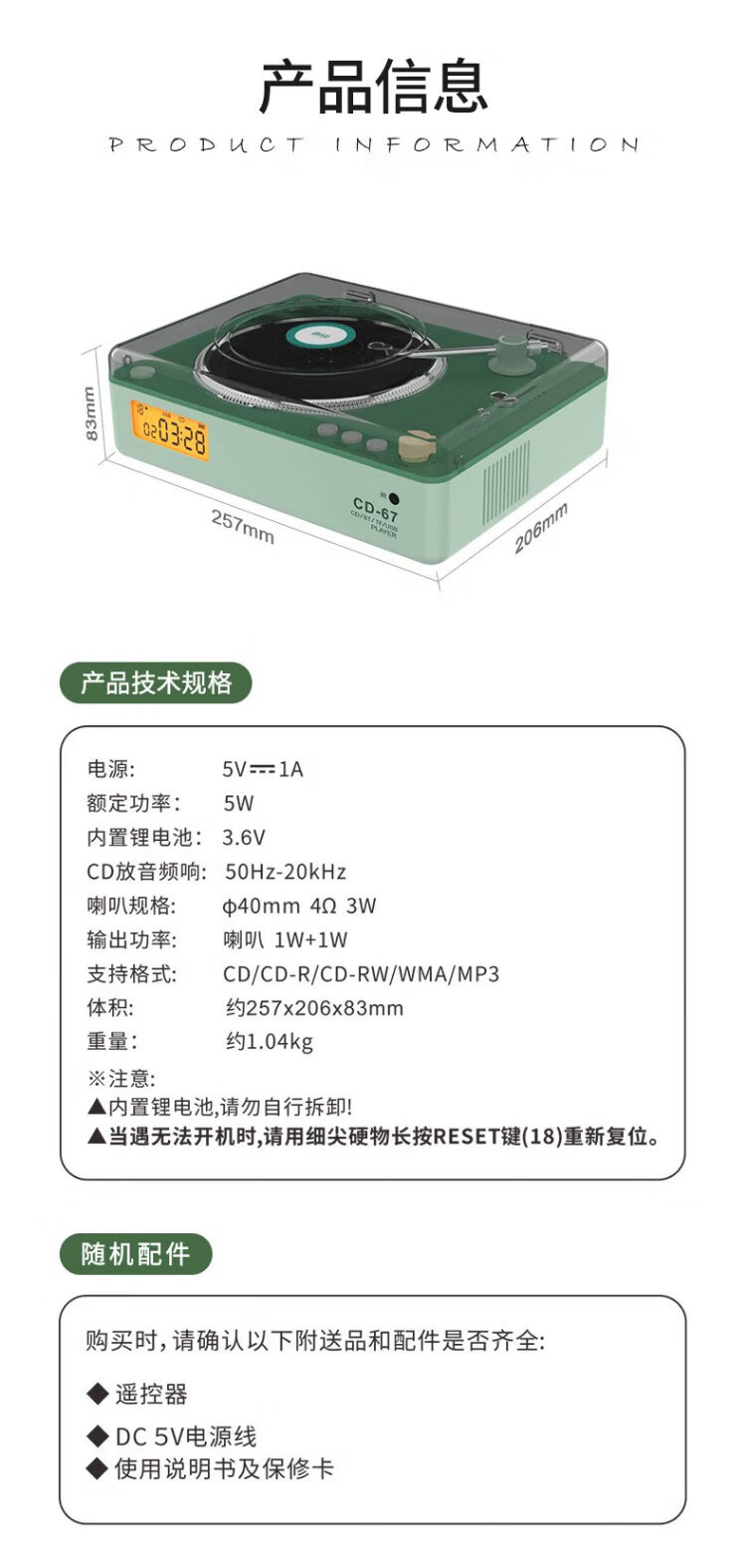 Panda (PANDA) CD-67 album cd player bluetooth player audio integrated home player disc audiophile-grade record (white)