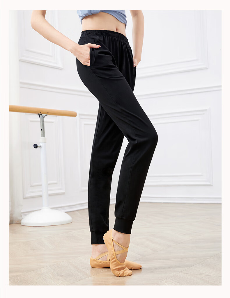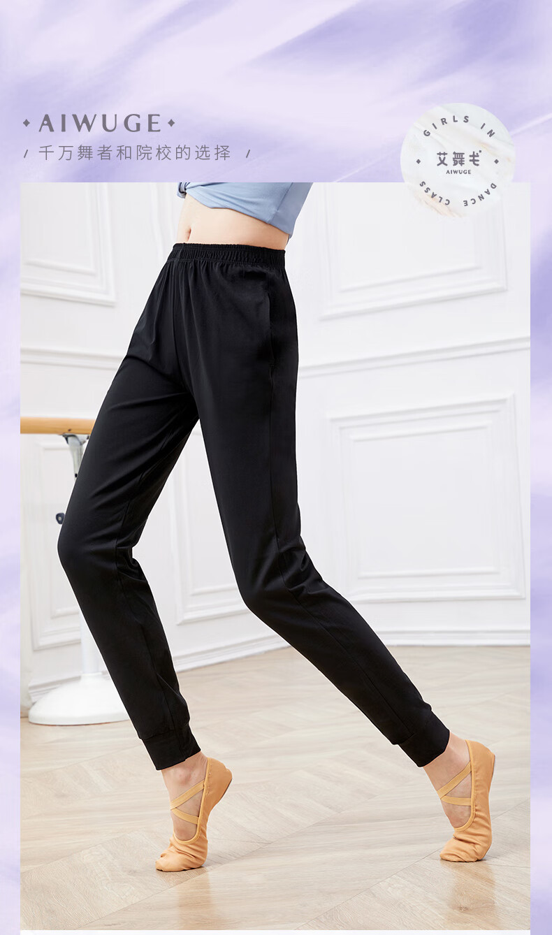 Aiwugo adult dance pants women's exercise pants carrot pants loose leg-binding body dance fitness pants black size M