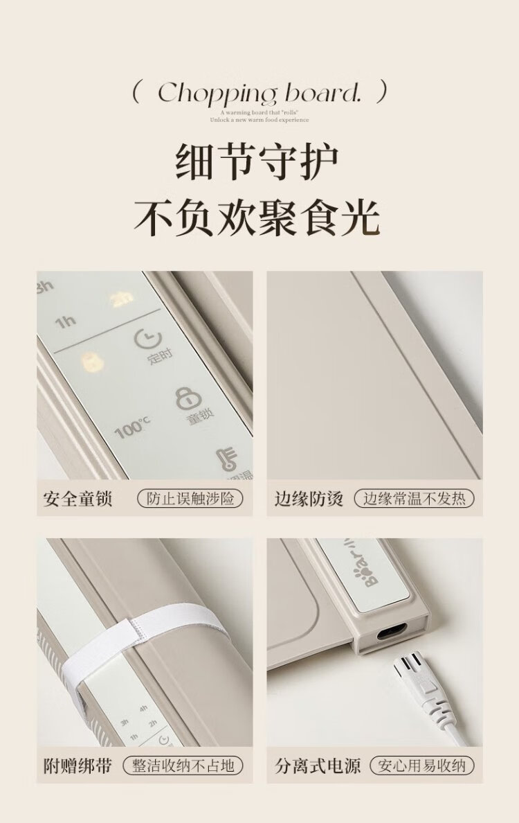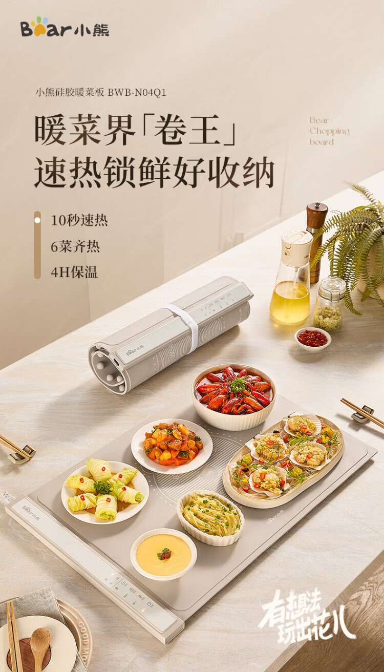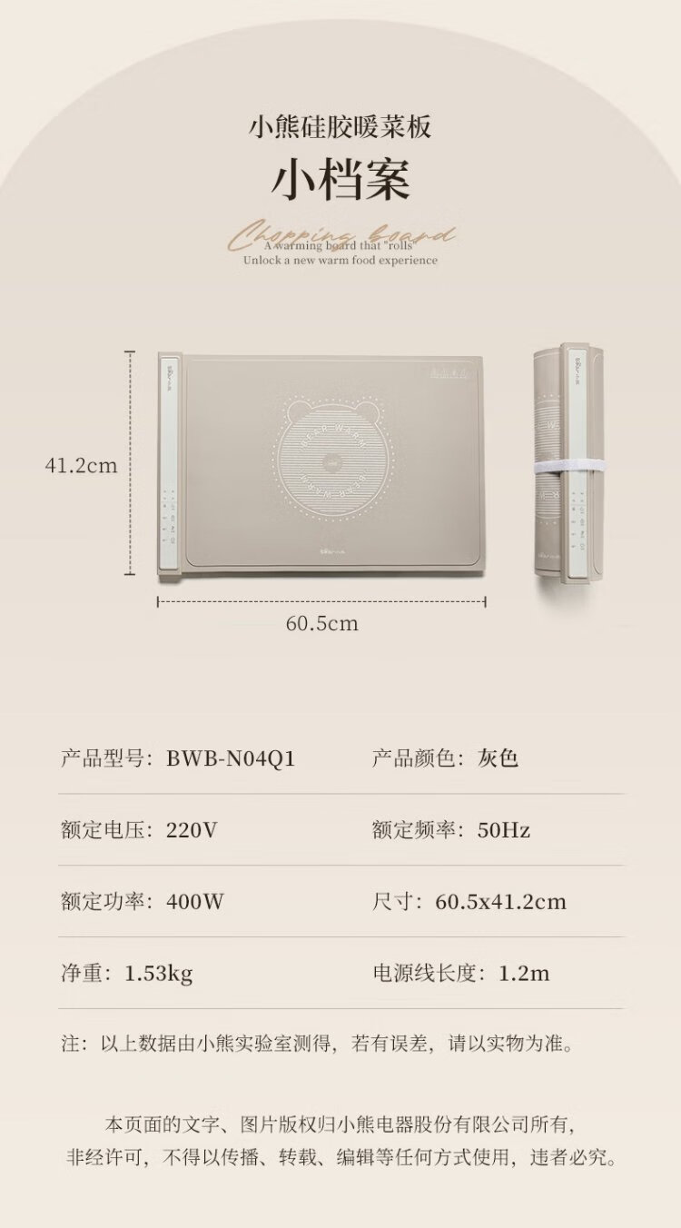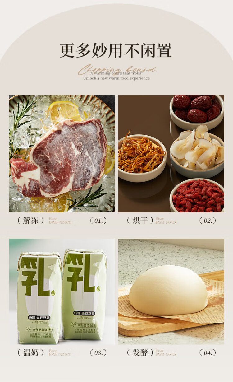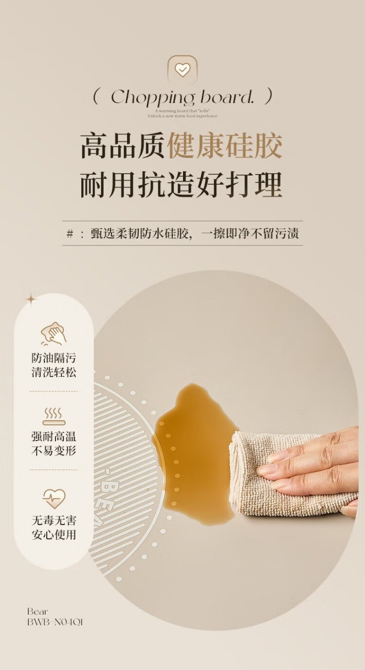 Bear Folding Warming Chopping Board Food Insulation Plate Hot Chopping Board Silicone Heating Plate Table Mat Chopping Board Multi-Function Heating Pad Flexible Panel Thawing Warm Milk BWB-N04Q1