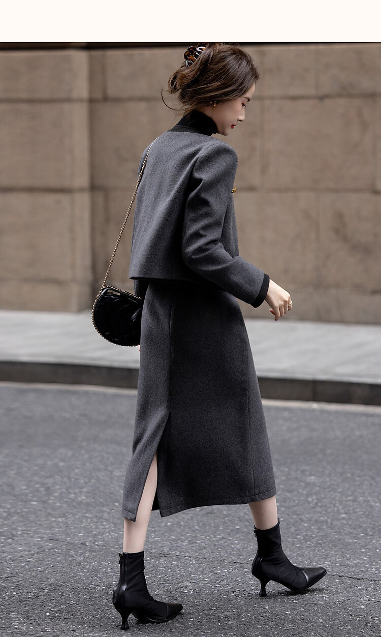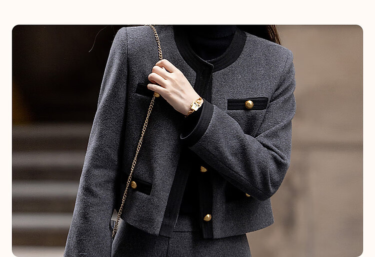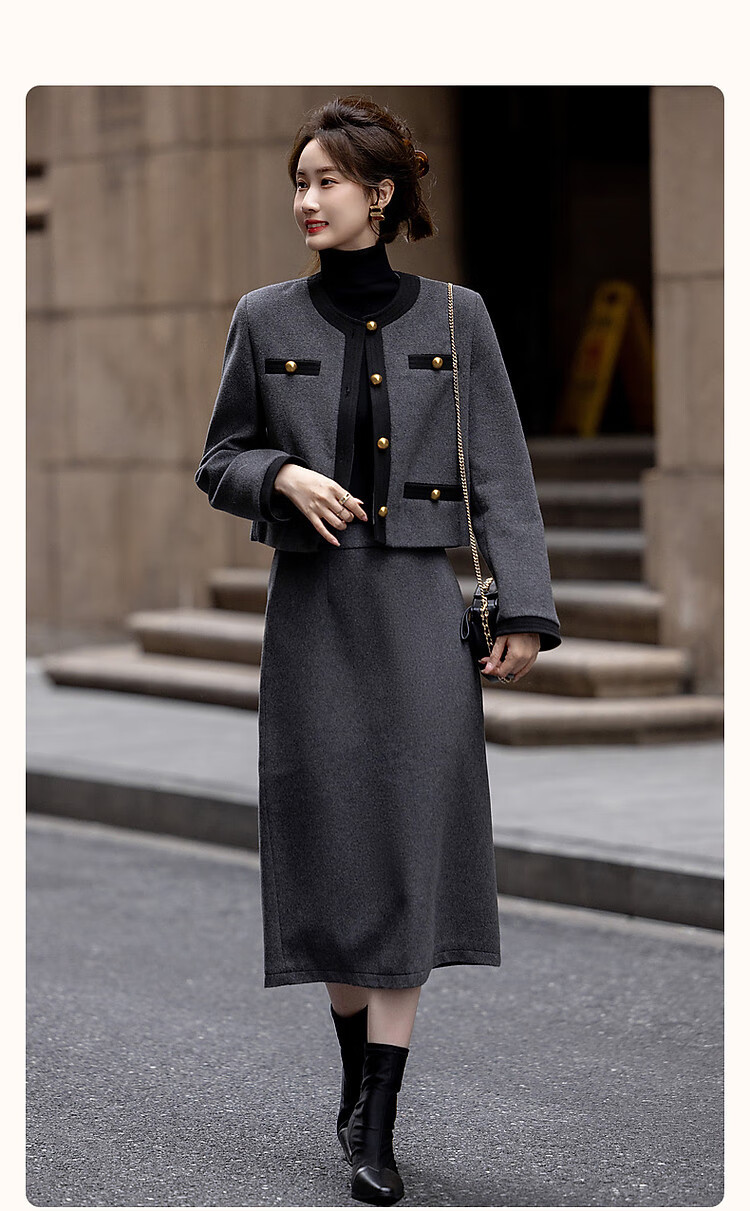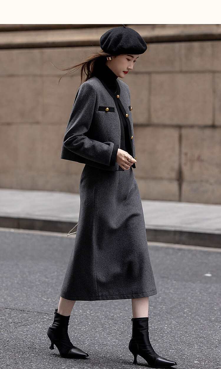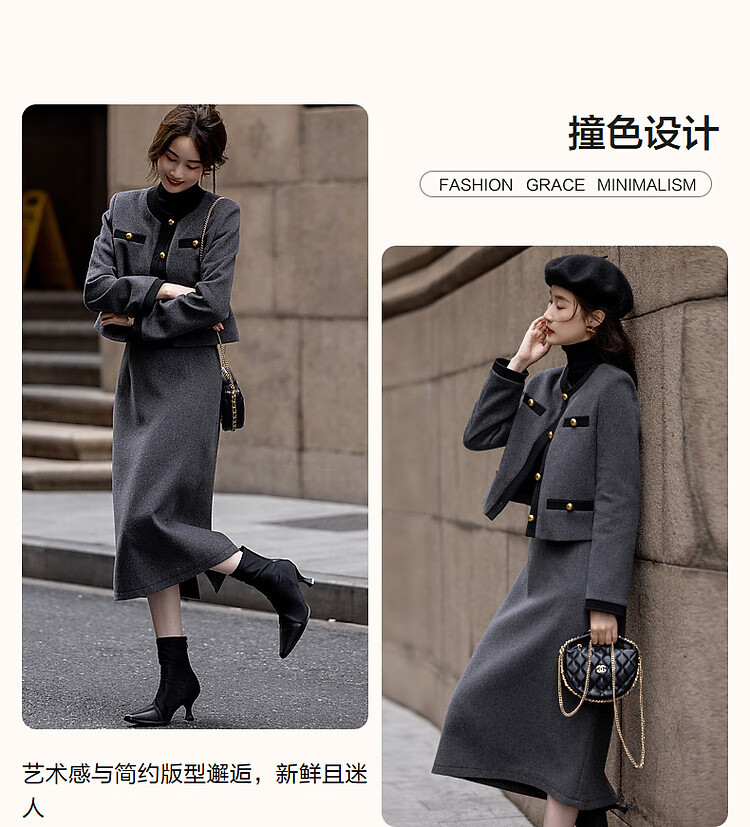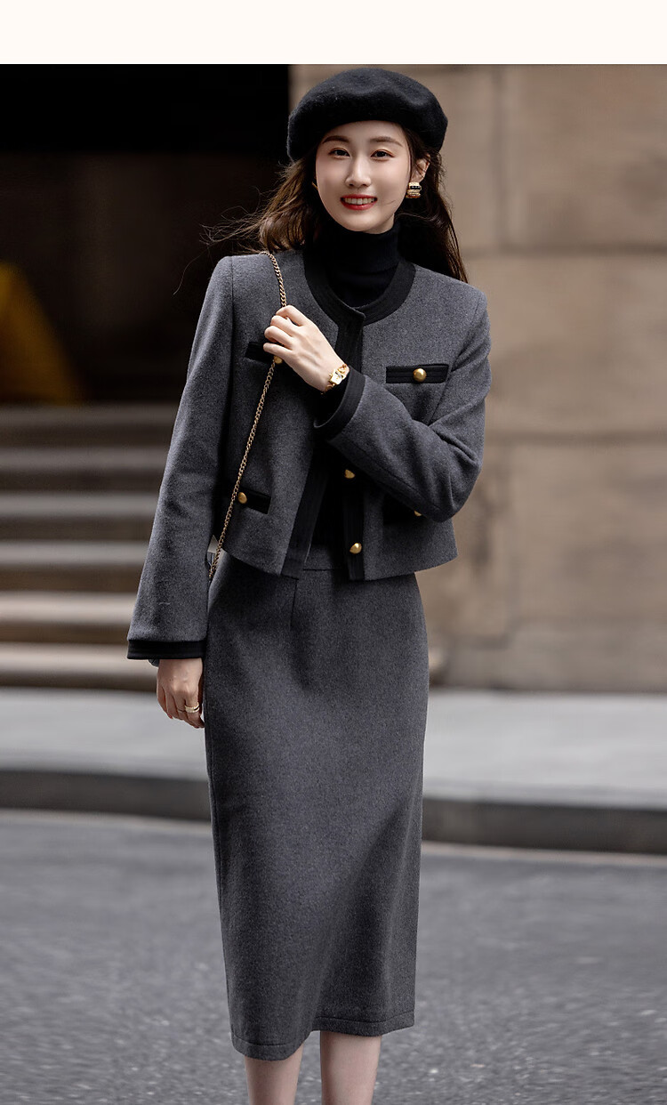 Demana Breathing Sheep Wool Autumn and Winter Madeleine One-Word Bag Contrast Color Suit Small Fragrance Style Two-piece Set for Women