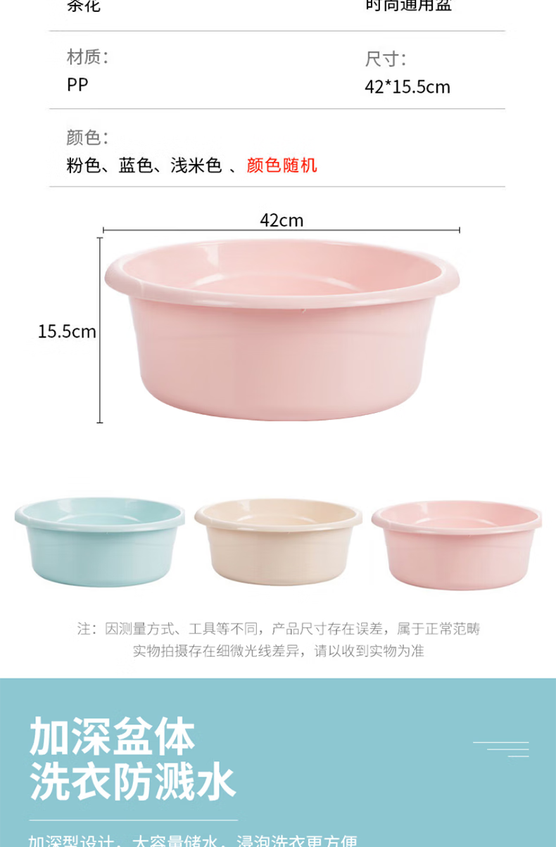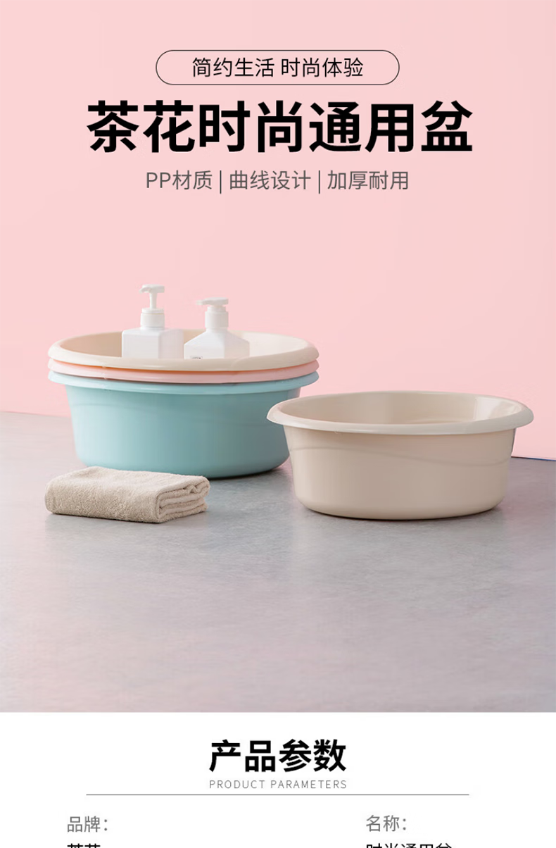 Camellia Plastic Basin Large Washbasin Student Dormitory Washing Clothes Feet Baby Foot Bath Basin 42cm