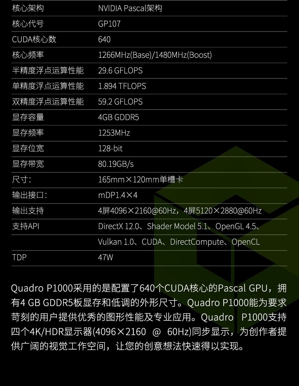 NVIDIA Quadro P1000 4G GDDR5 Professional Card Original Box