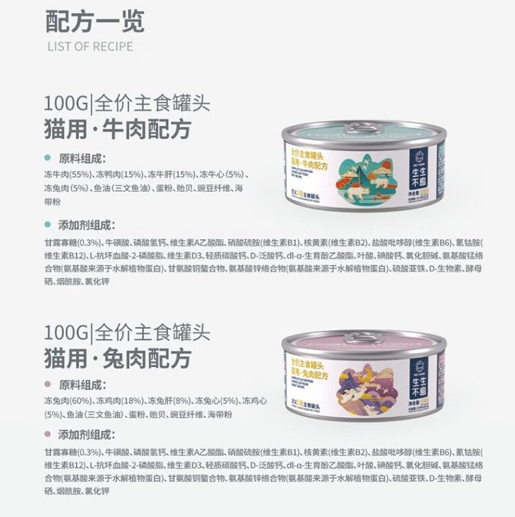 Everlasting cat wet food staple food canned raw bone and meat full price staple food canned cat food rabbit meat flavor 100g*6 cans