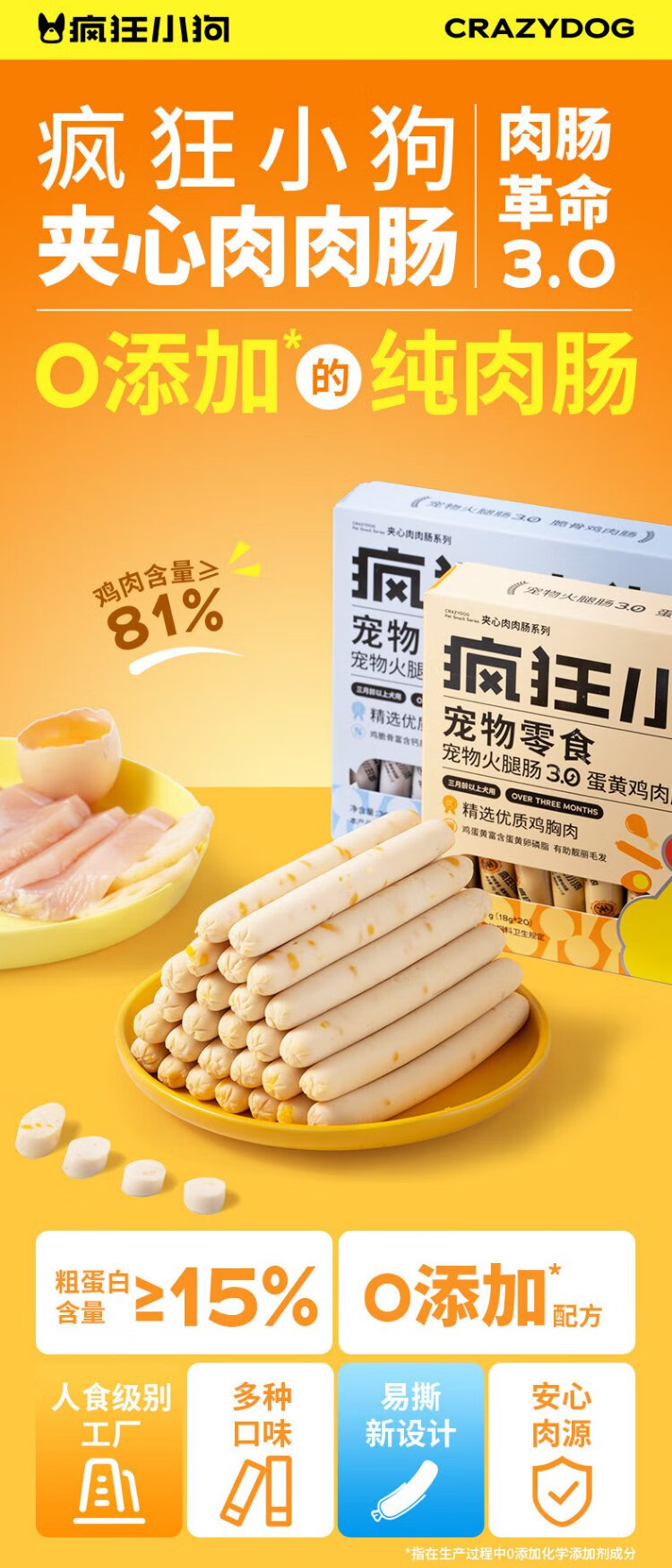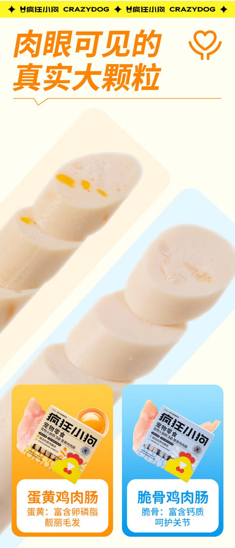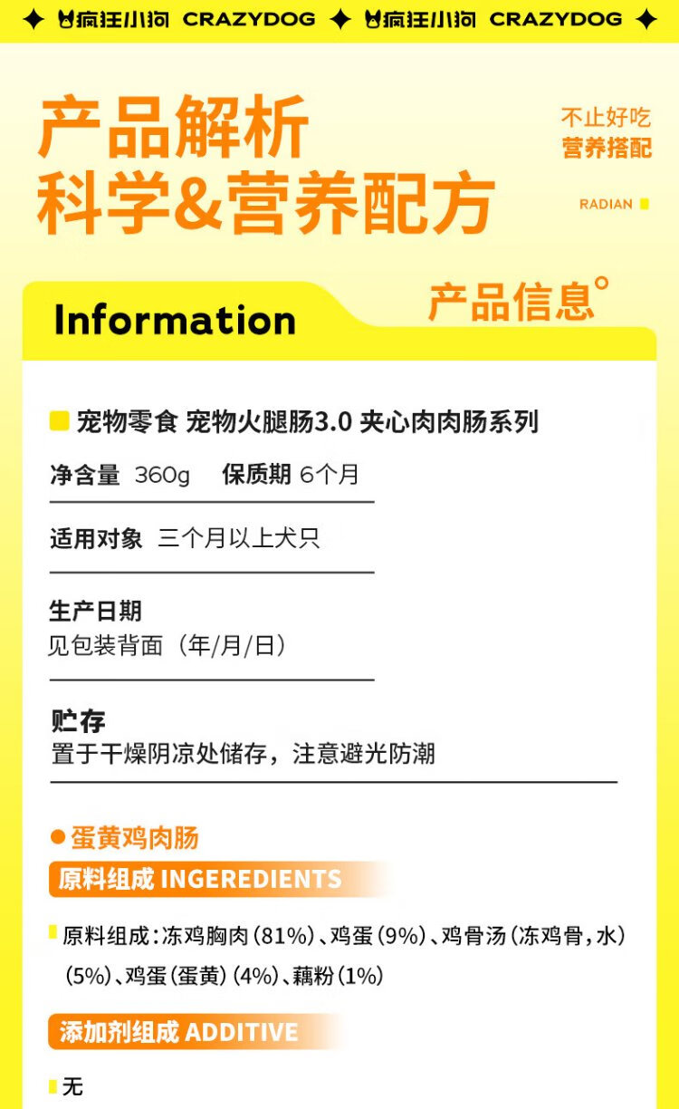 Crazy Puppy Pet Dog Snacks Dog Training Rewards Universal for Adult Dogs and Puppies Egg Yolk Chicken Sausage 360g (18g*20)