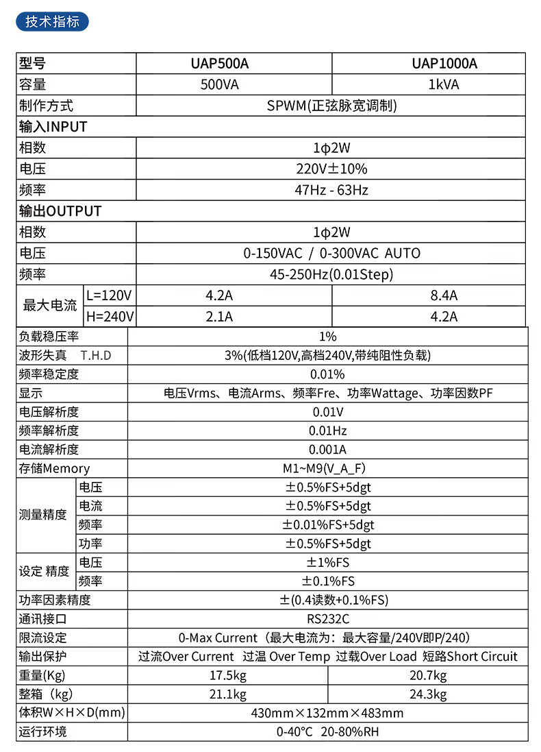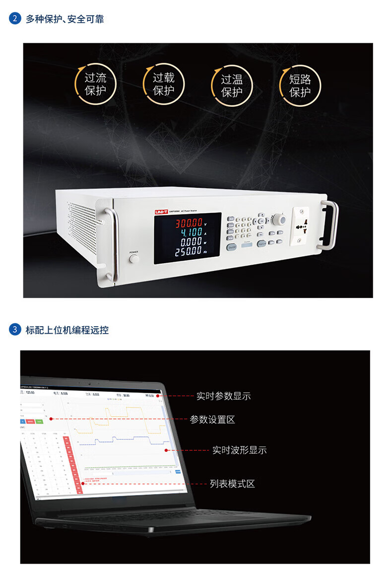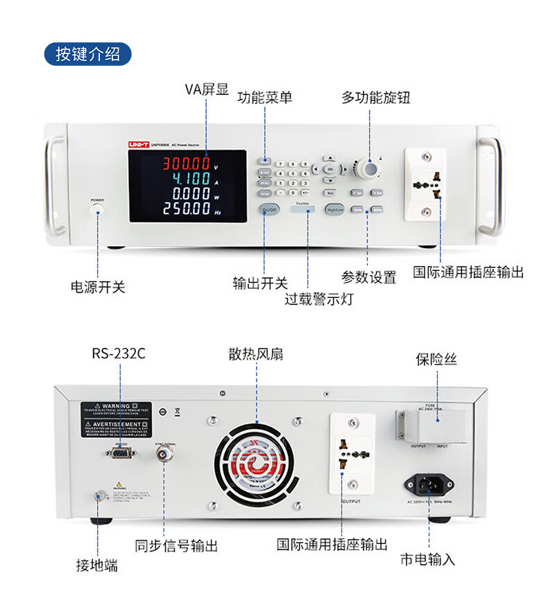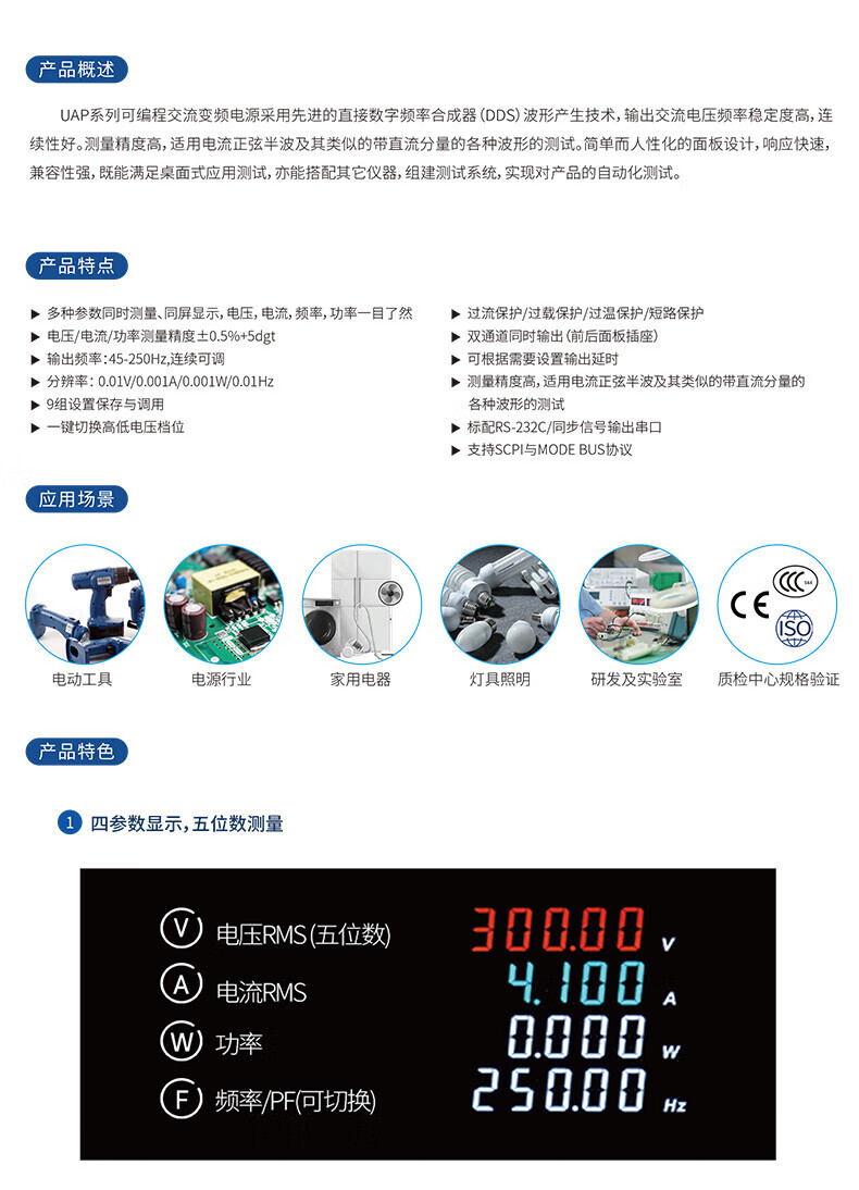 UAP1000A programmable AC variable frequency power supply high-precision overcurrent, overload, overtemperature and short-circuit protection instrument