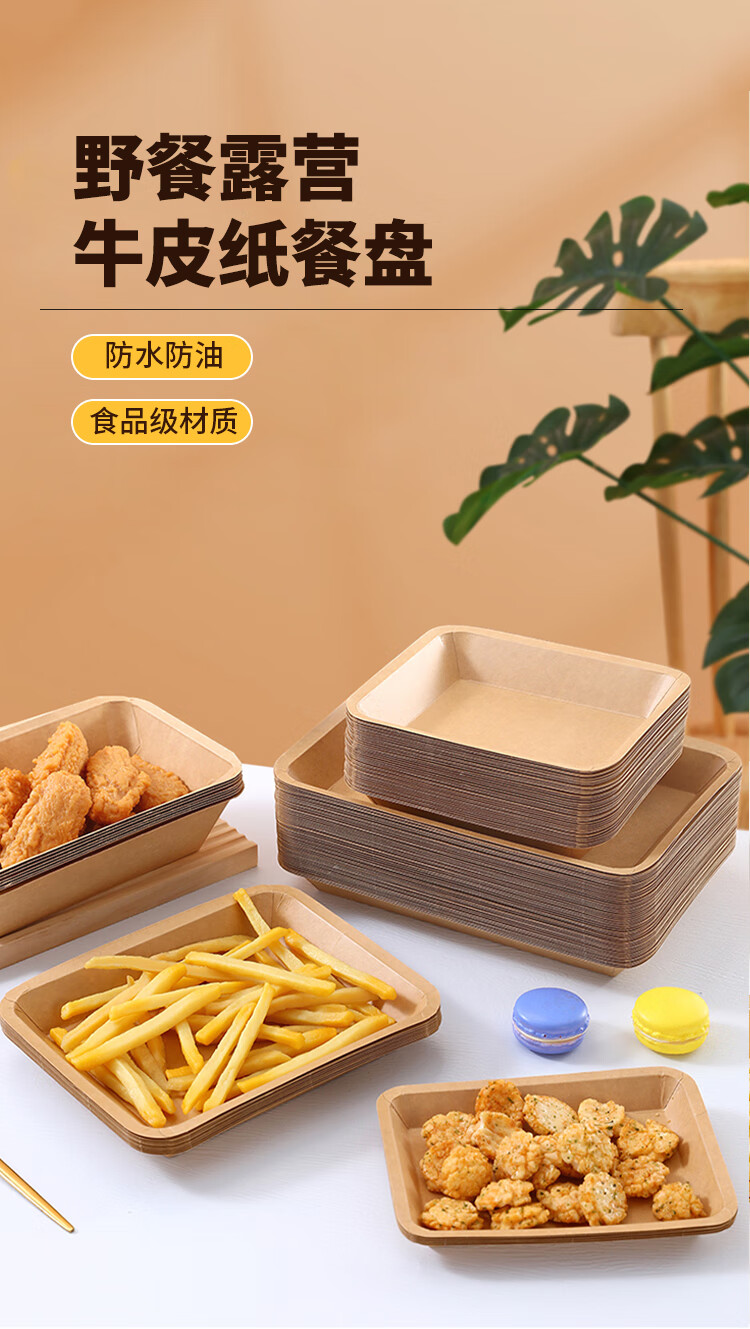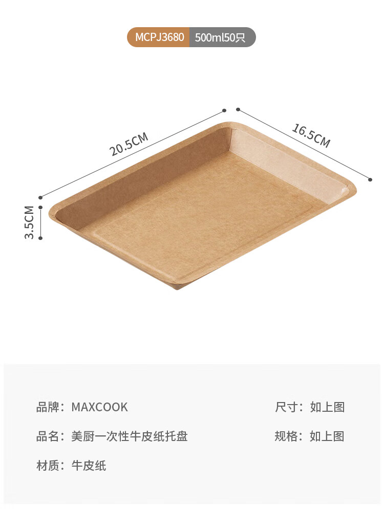 MAXCOOK disposable plates 500ml 50 biodegradable kraft paper plates paper plate cake barbecue picnic plate MCPJ3680
