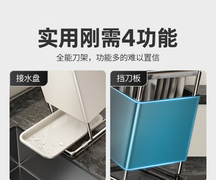 Jibaiju kitchen knife rack chopstick cage household countertop kitchen knife rack multi-functional knife storage rack with water tray