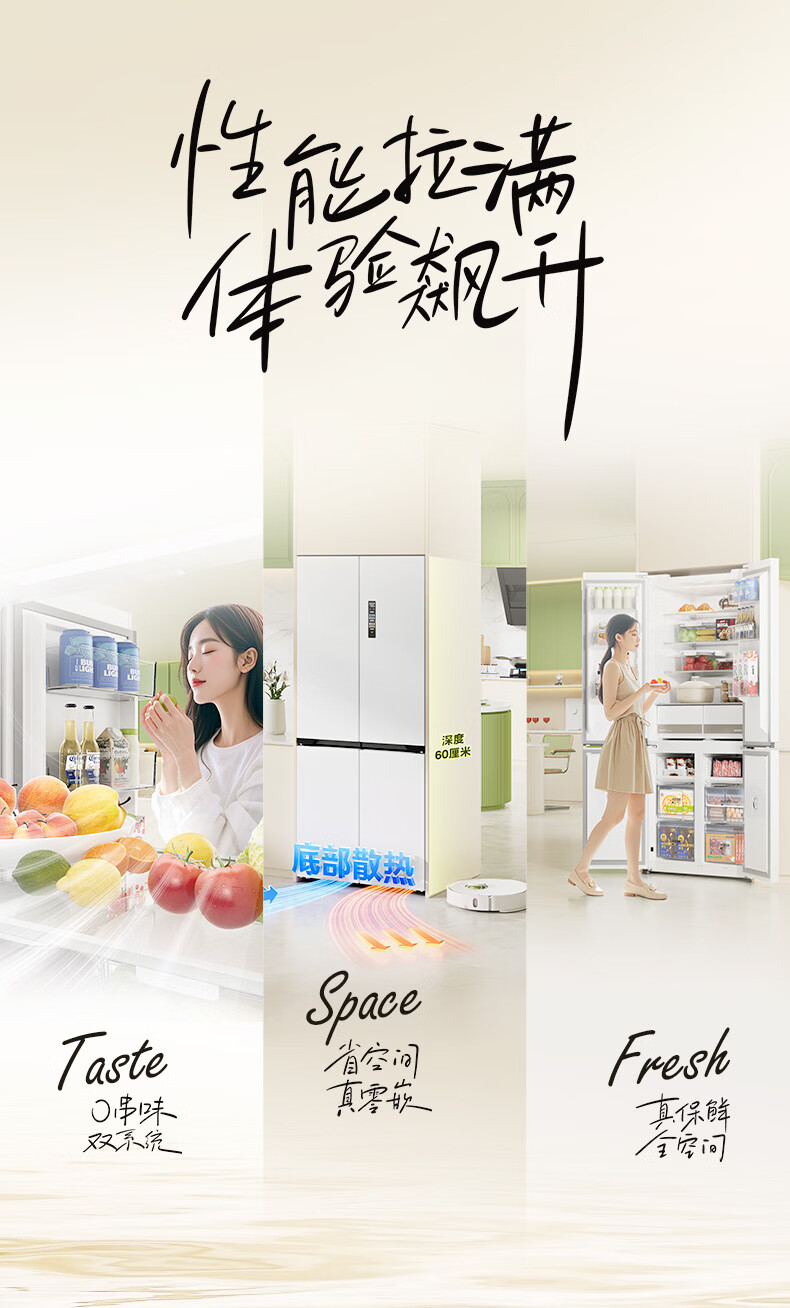 Hualingmei's 521L cross-door refrigerator dual-system ultra-thin zero-embedded air-cooled frost-free first-class energy efficiency dual-frequency HR-547WUSPZ national subsidy