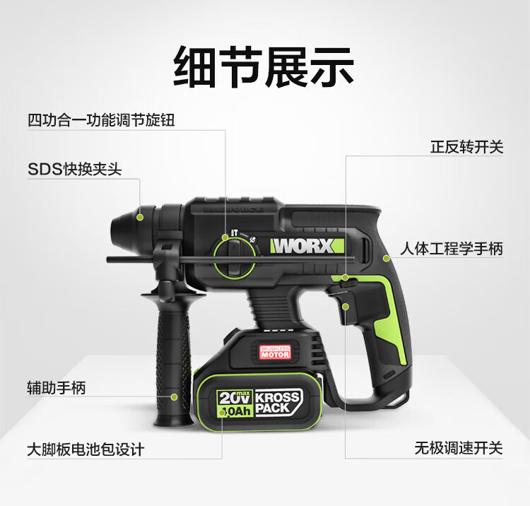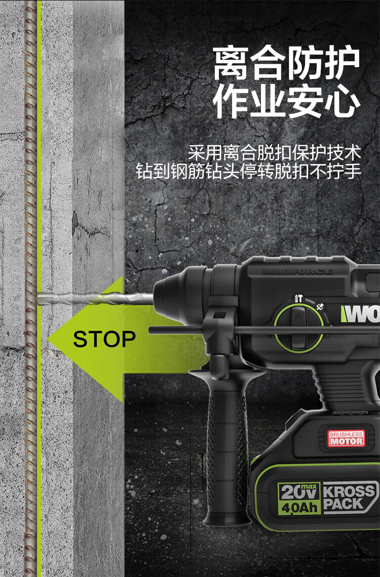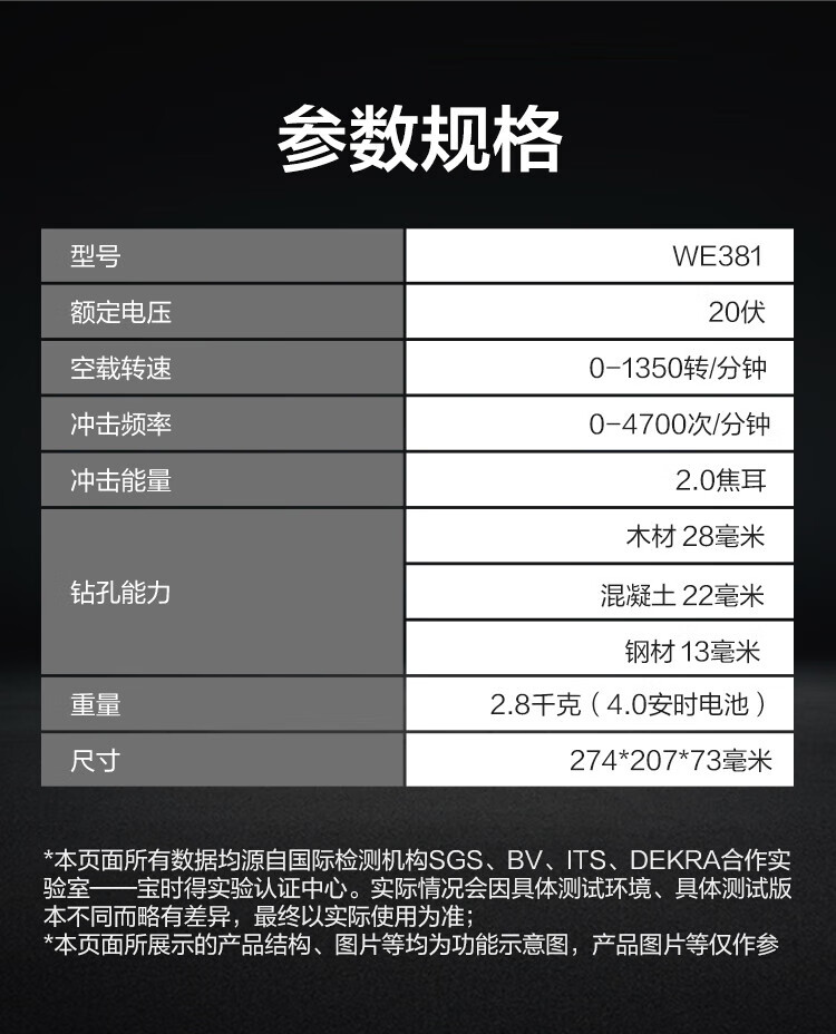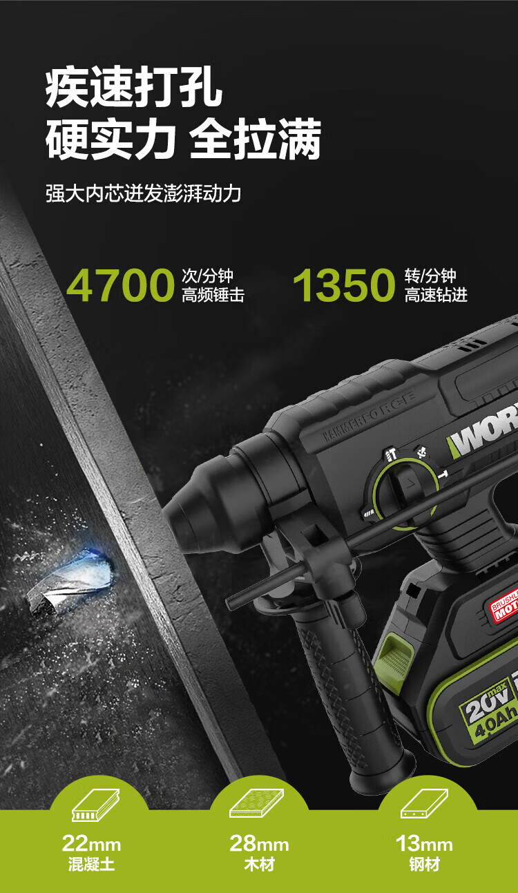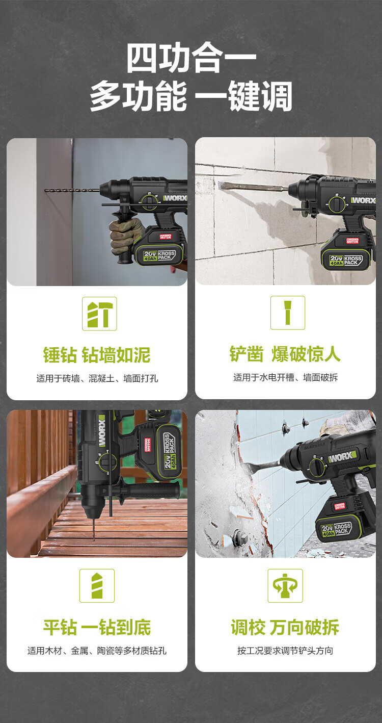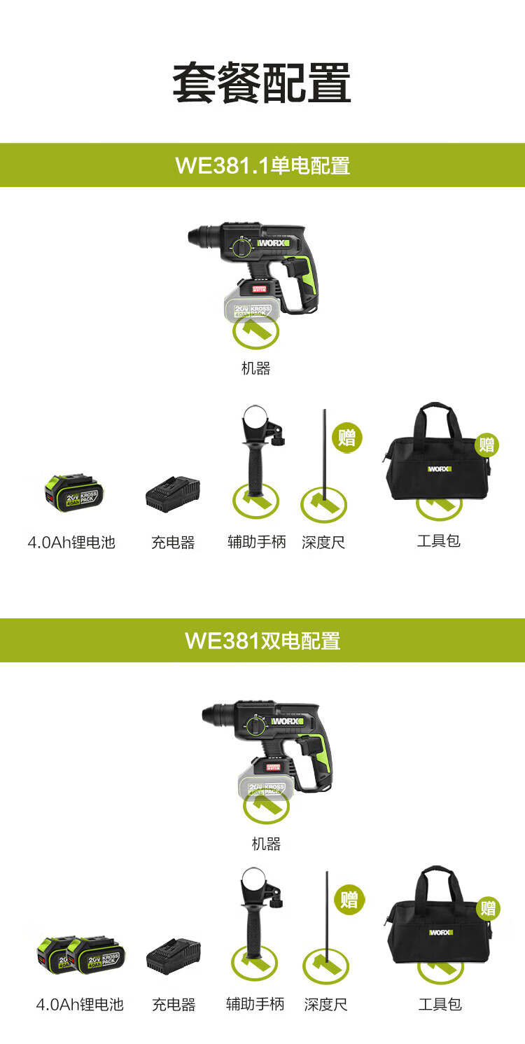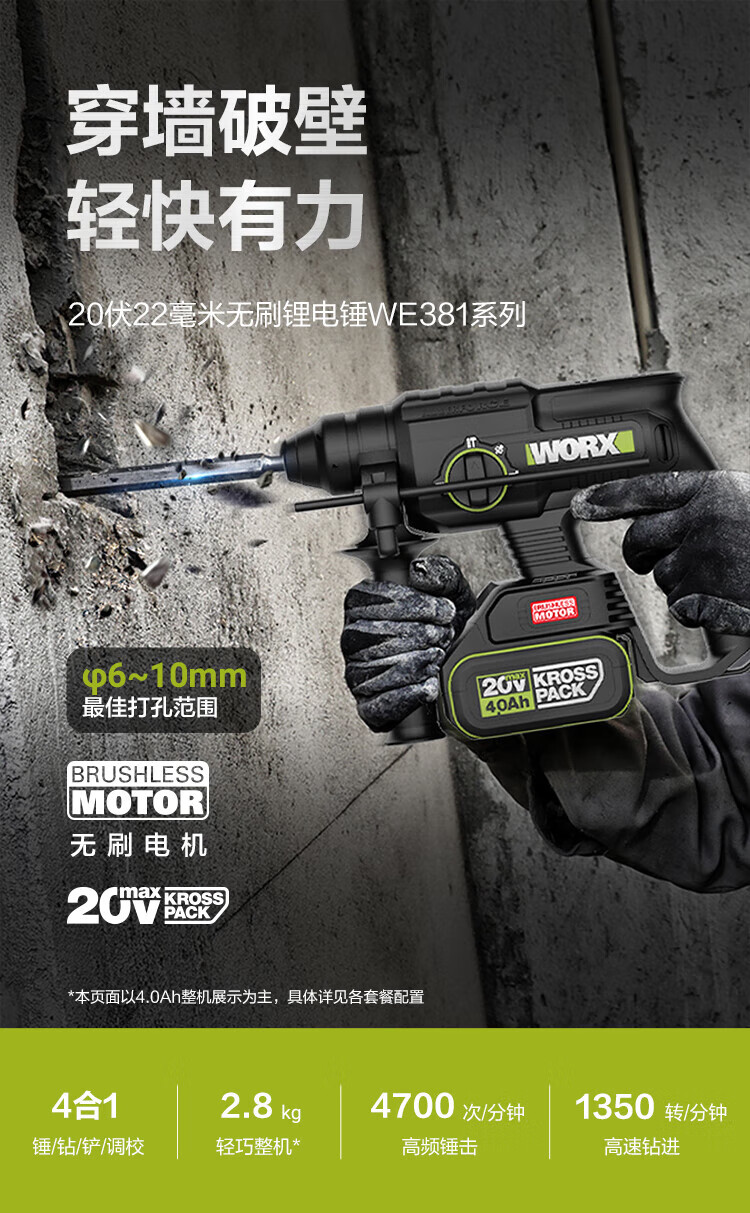 Vickers 20V brushless rechargeable electric hammer impact drill WE381 (4.0 dual-electric) lithium battery pickaxe drill dual-purpose for concrete drilling