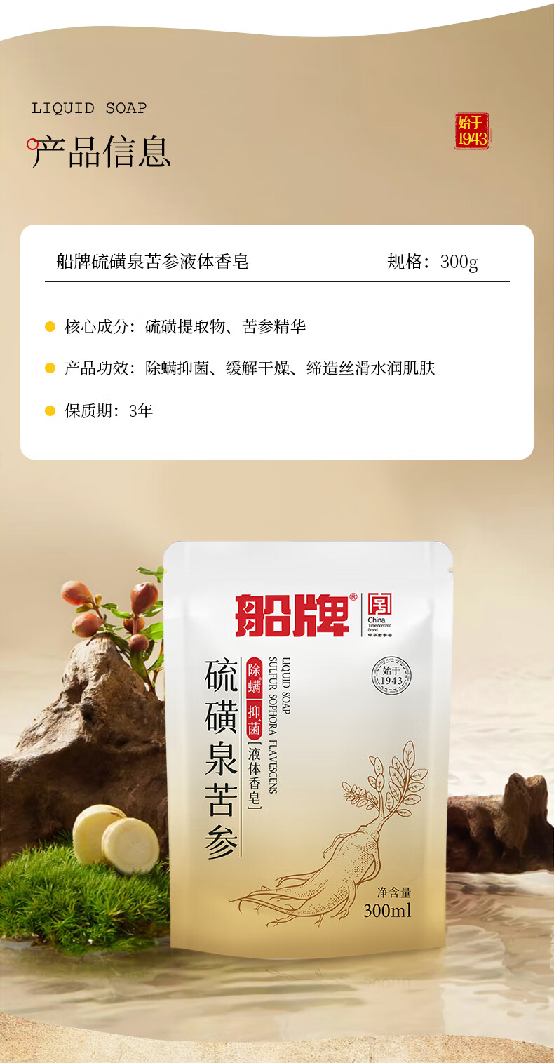 Ship brand sulfur soap 300g/bag refill oil-controlling, antibacterial and mite-removing liquid soap for face washing, hair washing and bathing three-in-one