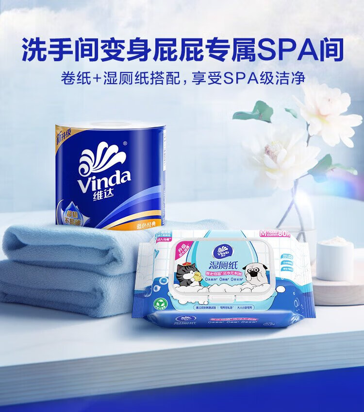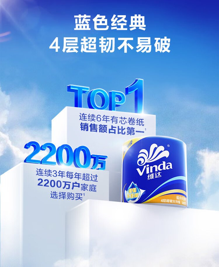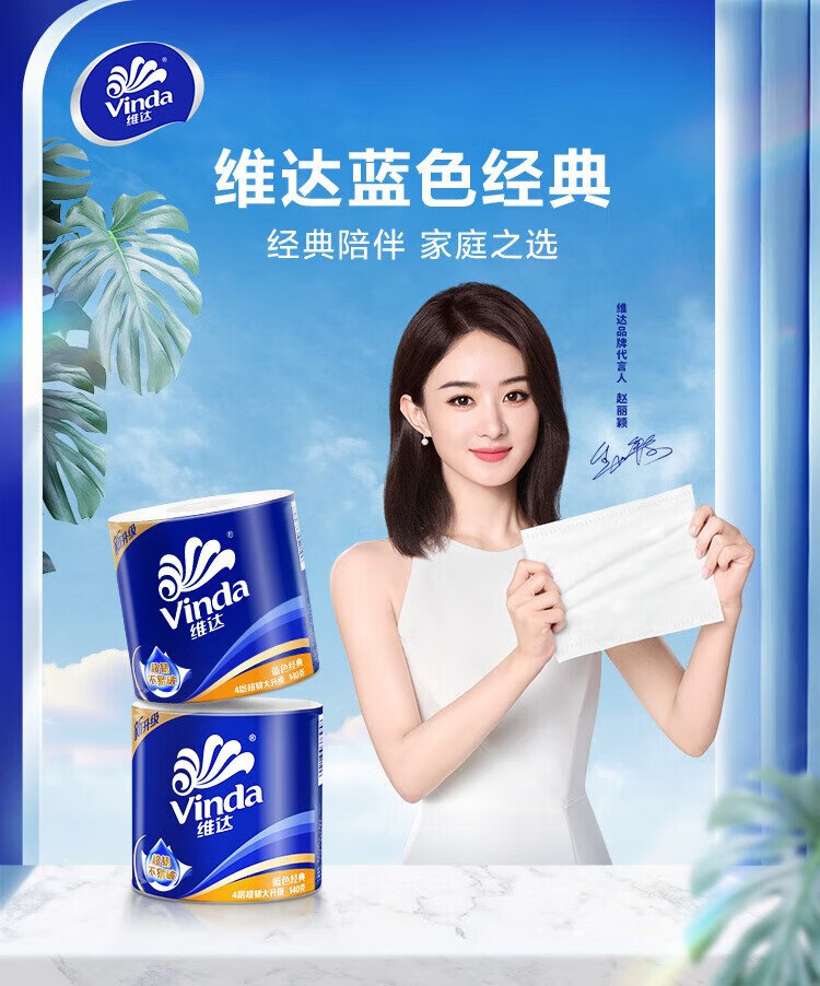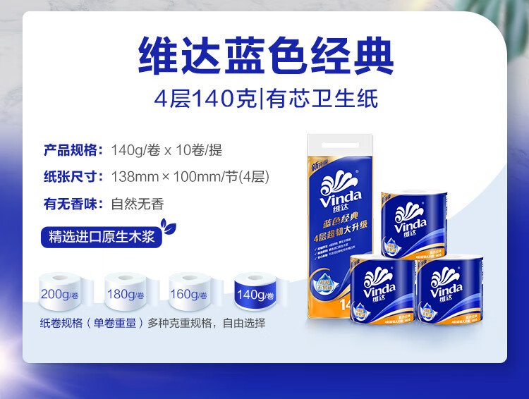 Vinda cored roll paper blue classic 4-layer 140g*10 rolls*3 bags toilet paper roll